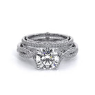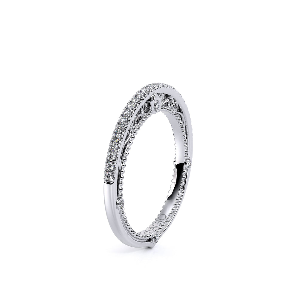 VENETIAN-5003WSB from the Venetian Collection, features an intricate straight band set with round brilliant diamonds. The inner profile showcases a beautiful handcrafted lace and our signature beading. Make it yours in two-tone or all one color to match your Verragio engagement.