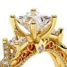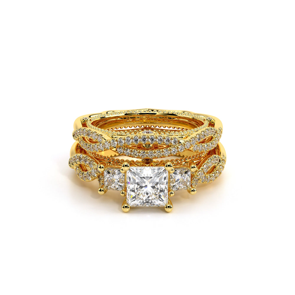 VENETIAN-5013P is a timeless representation of a three stone diamond engagement ring featuring two princess side diamonds on a twisted shank with round brilliant diamonds, all coming together in perfect harmony. A beautiful handcrafted lace and Verragio signature beading completes this stunner.