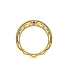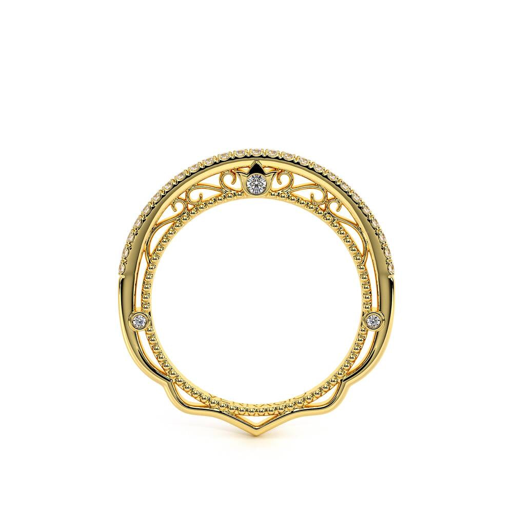 VENETIAN-5013WSB from the Venetian Collection, features an intricate straight wedding band designed with round brilliant diamonds. The inlay is beautifully laced with three bezel set round diamonds on each side along with our signature beading. Choose to go for a straight band or a twisted wedding band to compliment your Verragio engagement ring.