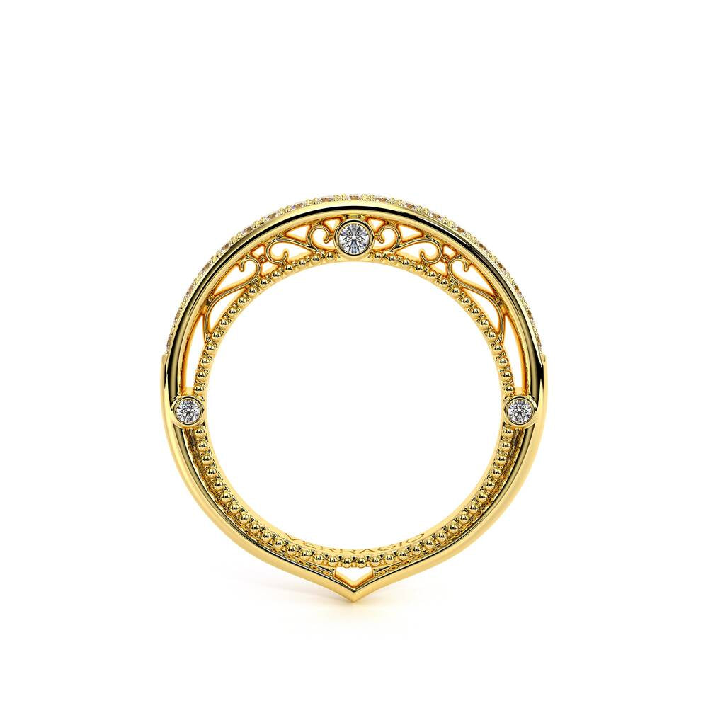 VENETIAN-5047W from the Venetian Collection, features a classic straight shank design encrusted with round brilliant diamonds. The inside profile embodies three bezel set round diamonds infused with lace & signature beading to match with your engagement ring. Complete your Verragio look by customizing your bridal set today.