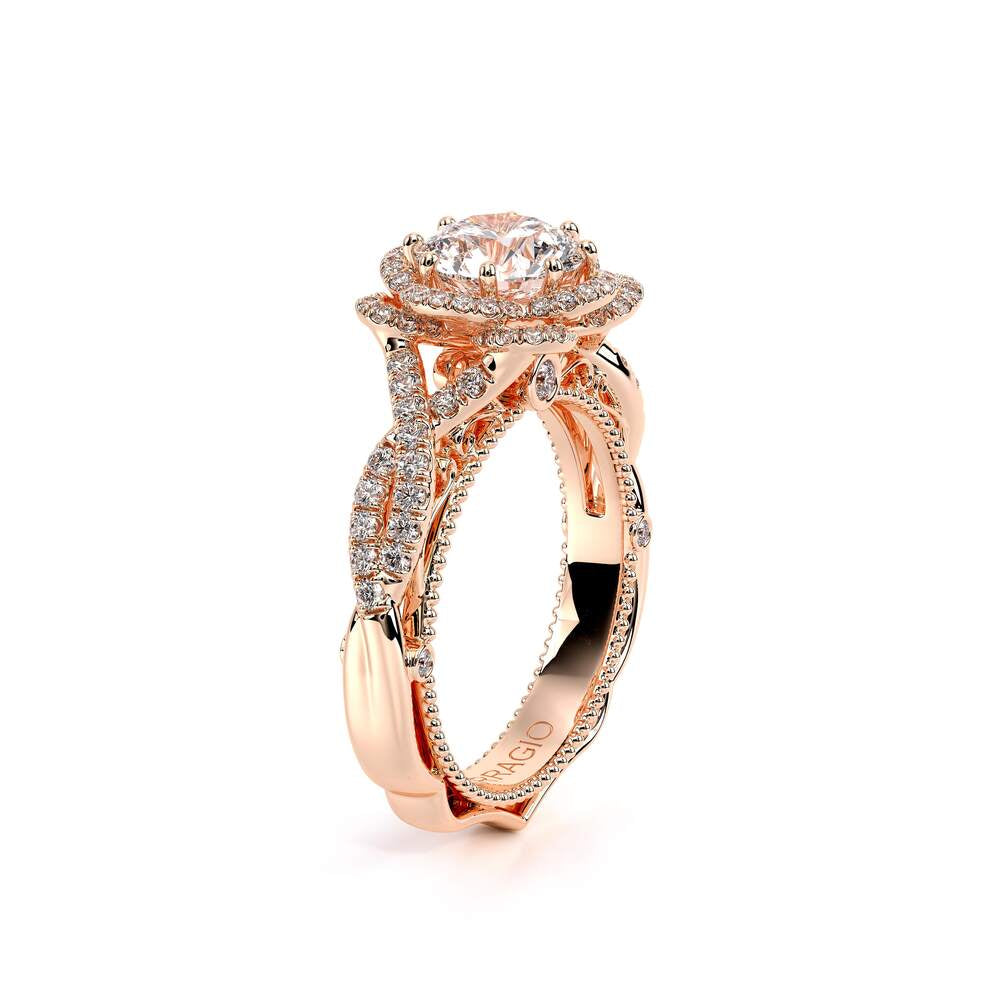 VENETIAN-5051R engagement ring features our beautiful Verragio floret halo with a twisted shank encrusted with round brilliant diamonds. An intricately crafted lace design along with our Verragio signature beading further enhances this gorgeous piece and you can't help but fall in love with it.