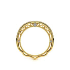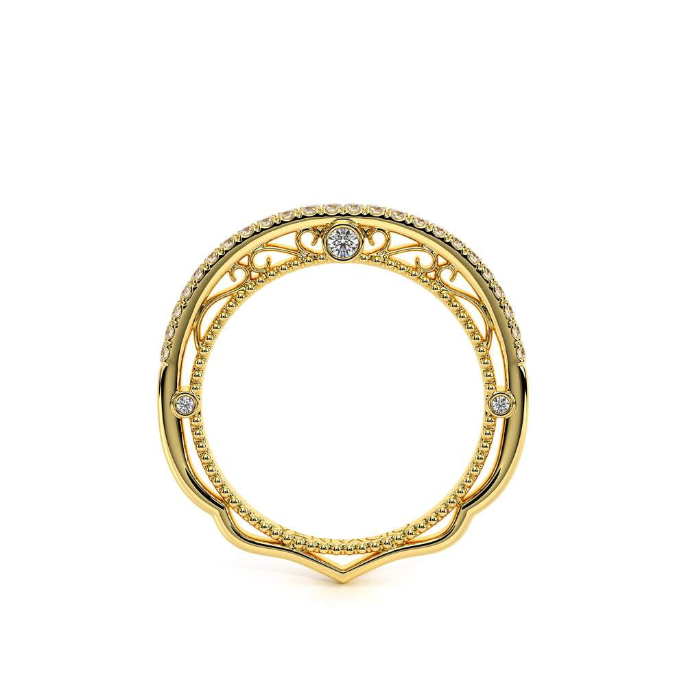 VENETIAN-5051WSB from the Venetian Collection, features a delicate straight band set with round brilliant diamonds. The inside profile showcases three bezel set round diamonds on each side infused with lace and signature beading.