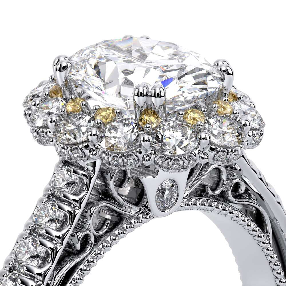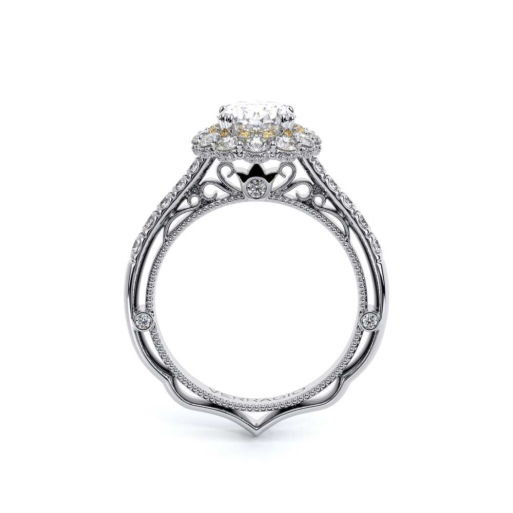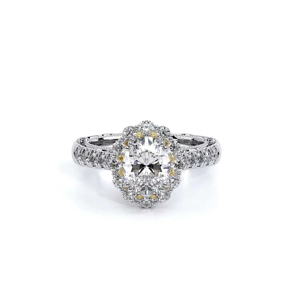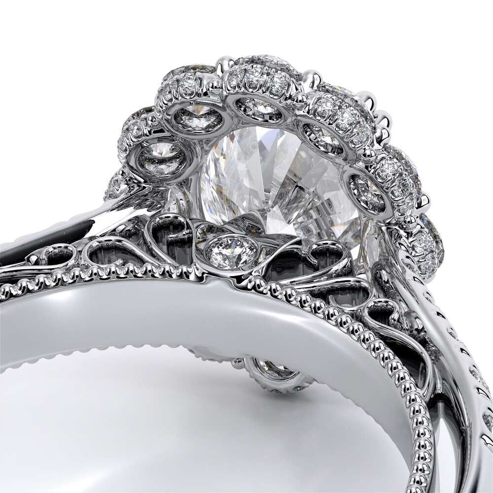 VENETIAN-5080OV engagement ring features an Enchanted Diamond Halo�� with a three layer Oval halo design, adding on to the sparkle of the center Oval diamond. This beauty features graduating round brilliant diamonds on the shank all infused together with our handcrafted lace and signature beading on the inside. The artistry and the craftsmanship of this ring will effortlessly make you stand out and shine.