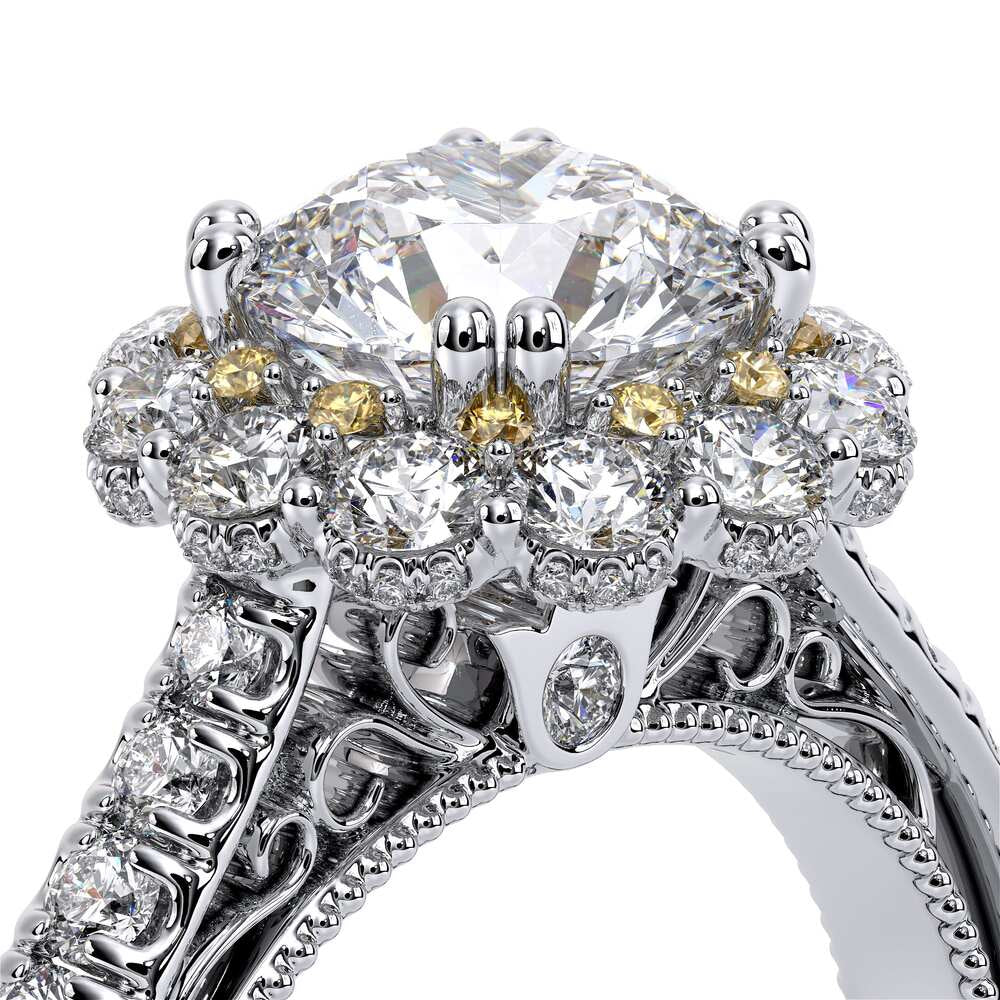 VENETIAN-5080R engagement ring features an round Enchanted Diamond Halo�� with a three layer halo design, adding on to the sparkle of the center round diamond. This beauty features graduating round brilliant diamonds on the shank all infused together with our handcrafted lace and signature beading on the inside. The artistry and the craftsmanship of this ring will effortlessly make you stand out and shine.