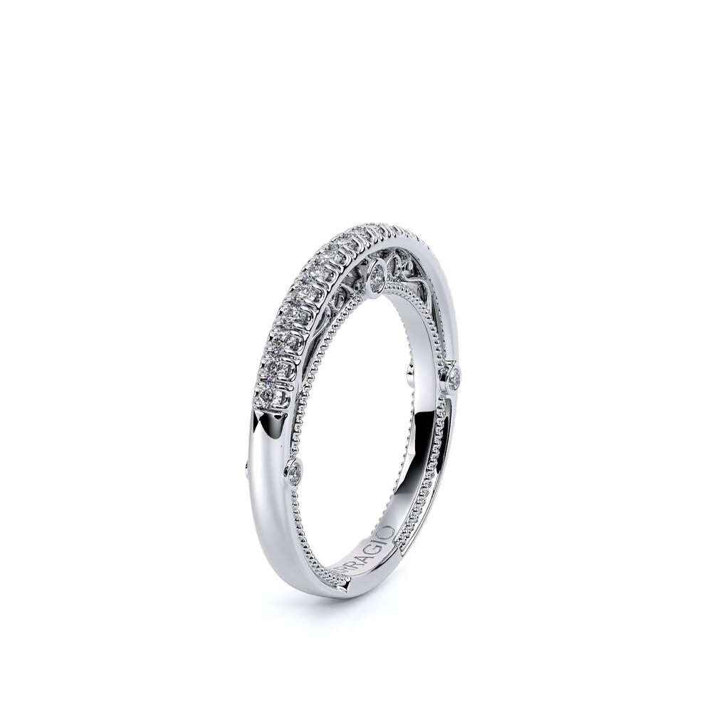 VENETIAN-5081W from the Venetian Collection, features a straight shank encrusted with round brilliant diamonds. The inside profile includes three bezels set round diamonds along with lace & signature beading to match with your engagement ring. Complete your Verragio look by customizing your bridal set today.