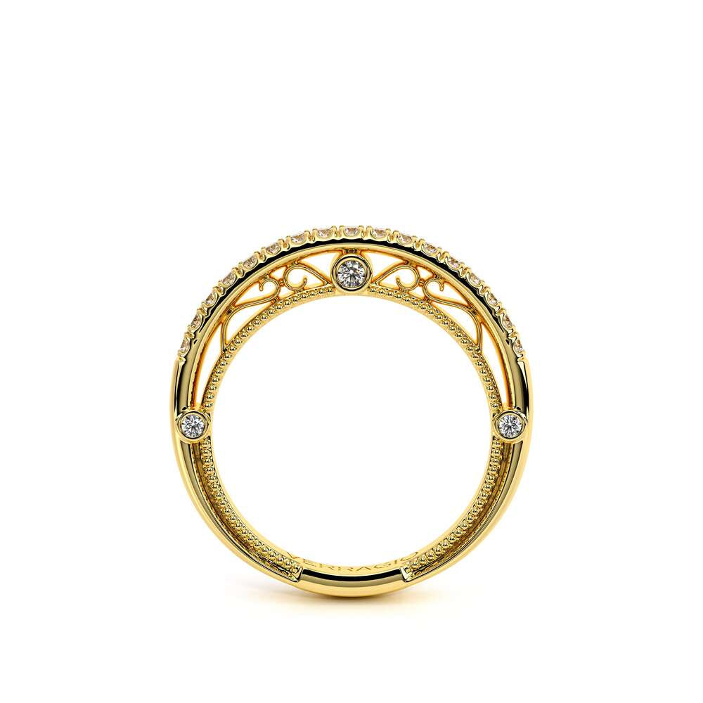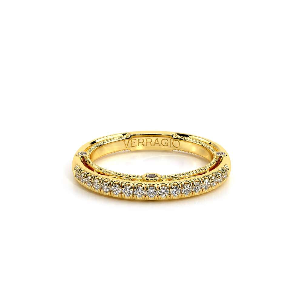VENETIAN-5081W from the Venetian Collection, features a straight shank encrusted with round brilliant diamonds. The inside profile includes three bezels set round diamonds along with lace & signature beading to match with your engagement ring. Complete your Verragio look by customizing your bridal set today.