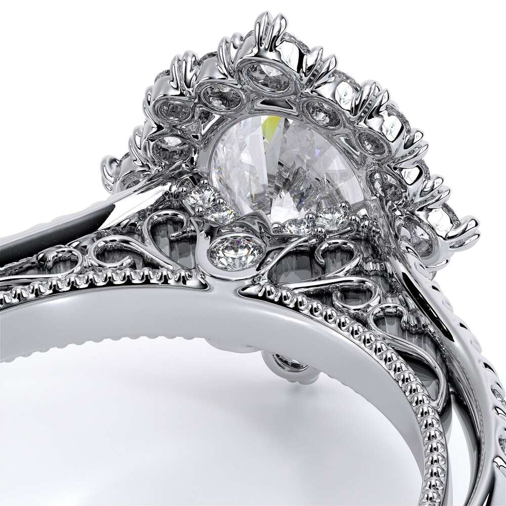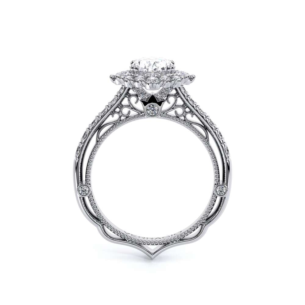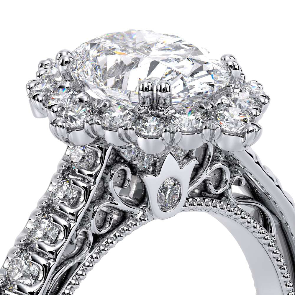 VENETIAN-5083OV engagement ring features our gorgeous Starburst Halo made for a Oval center stone. A straight shank adorned with round brilliant diamonds completes this beauty. Continue the vintage look with the lace shank on the bottom or keep it simple with our classic shank.