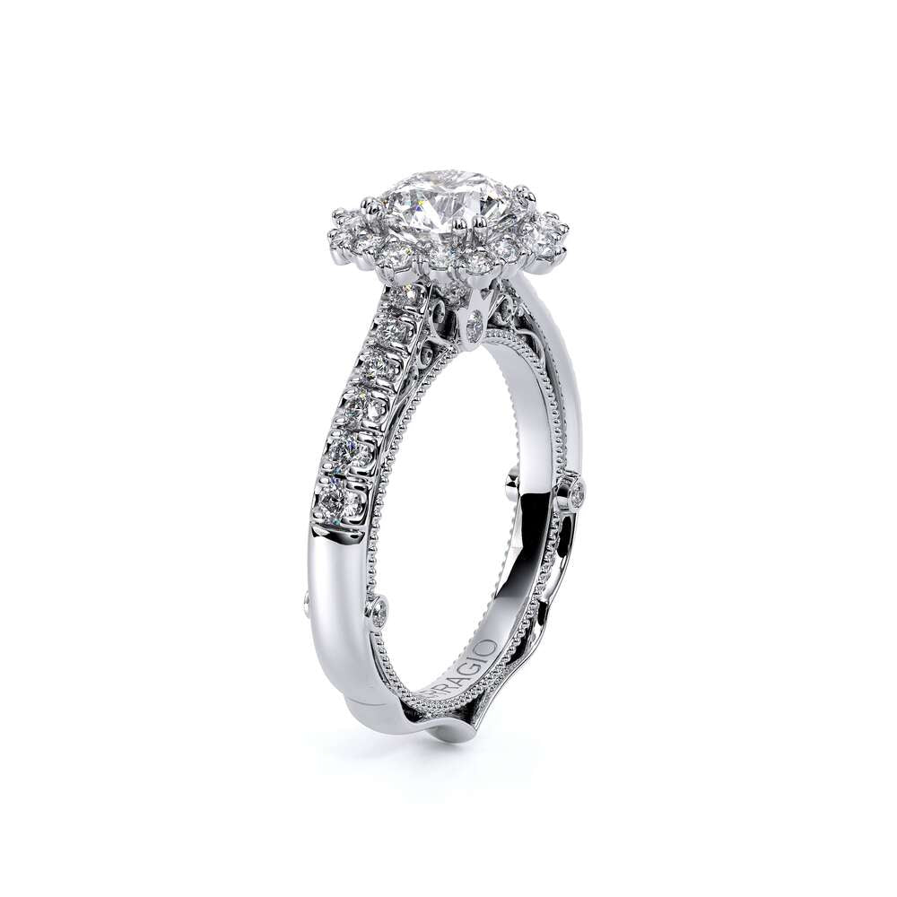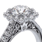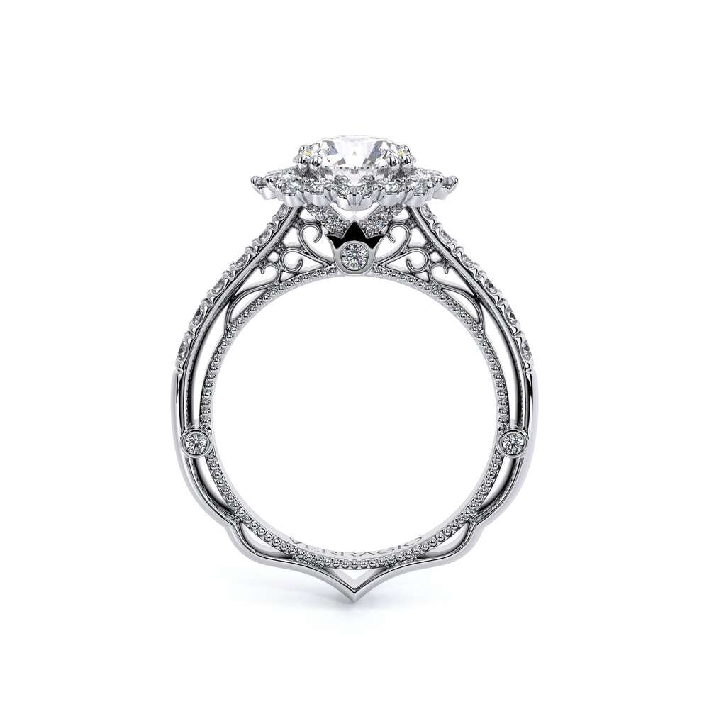 VENETIAN-5083R engagement ring features our gorgeous Starburst Halo made for a round center stone. A straight shank adorned with round brilliant diamonds completes this beauty. Continue the vintage look with a lace shank on the bottom or keep it simple with our classic shank.