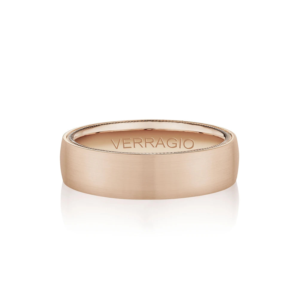 VW-6024 is a elegant 6MM width men's band with a matte finish. Featuring Verragio's timeless signature rose gold beading. Making this ring a perfect match to any Verragio ring.