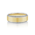 VWD-8912 is a satin finished band accented with pave diamonds, showcasing a blend of traditional elegance and luxurious detail.