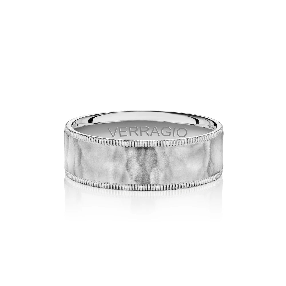 One of our latest wedding band designs in a 77mm width with a hammered matte finish, made complete with signature Verragio bead-work giving it a tailored feel. Whether you prefer modern or traditional styles, these wedding bands are precisely crafted with artisanal details to stand out.
