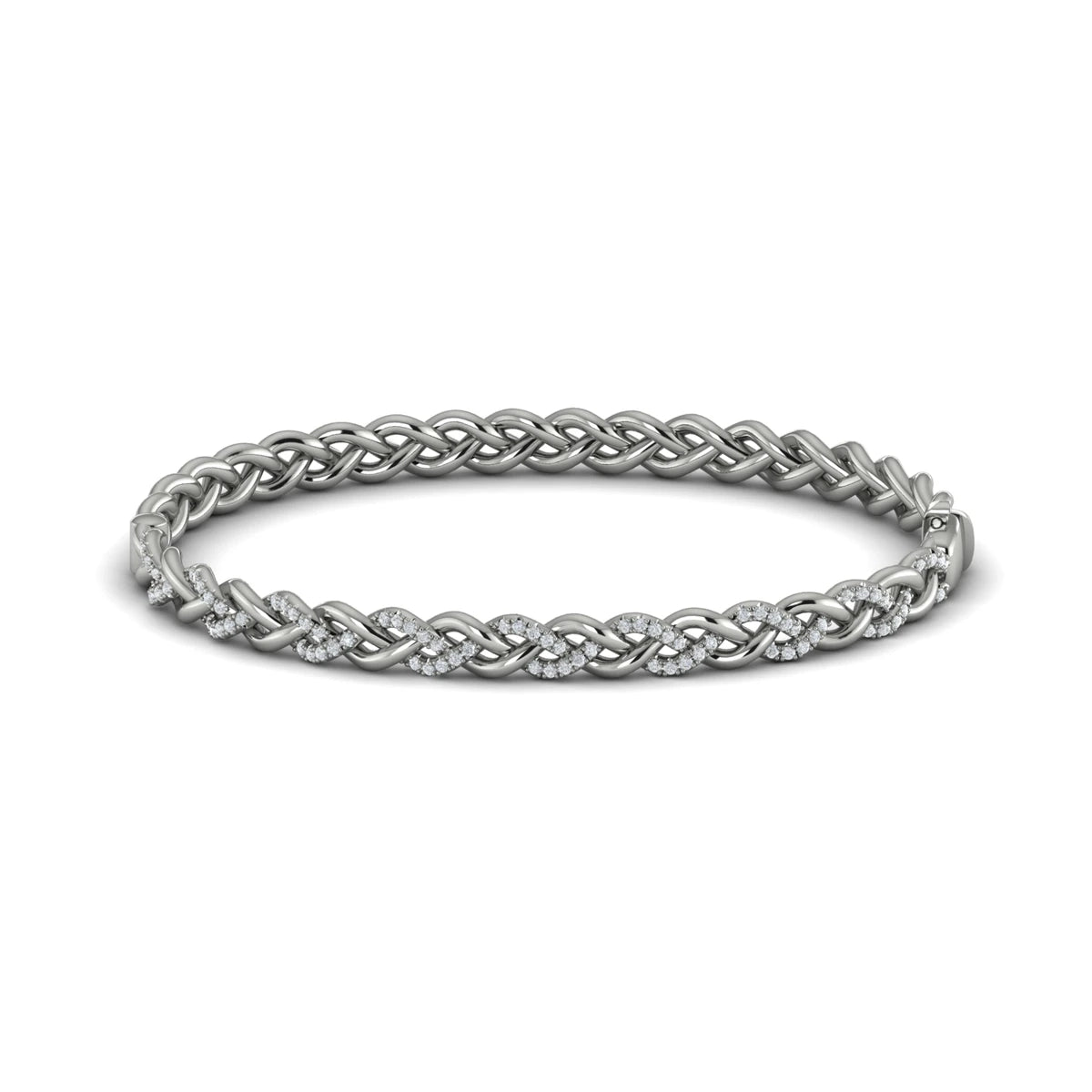 Alternating Diamond Twist Bangle Bracelet White Gold