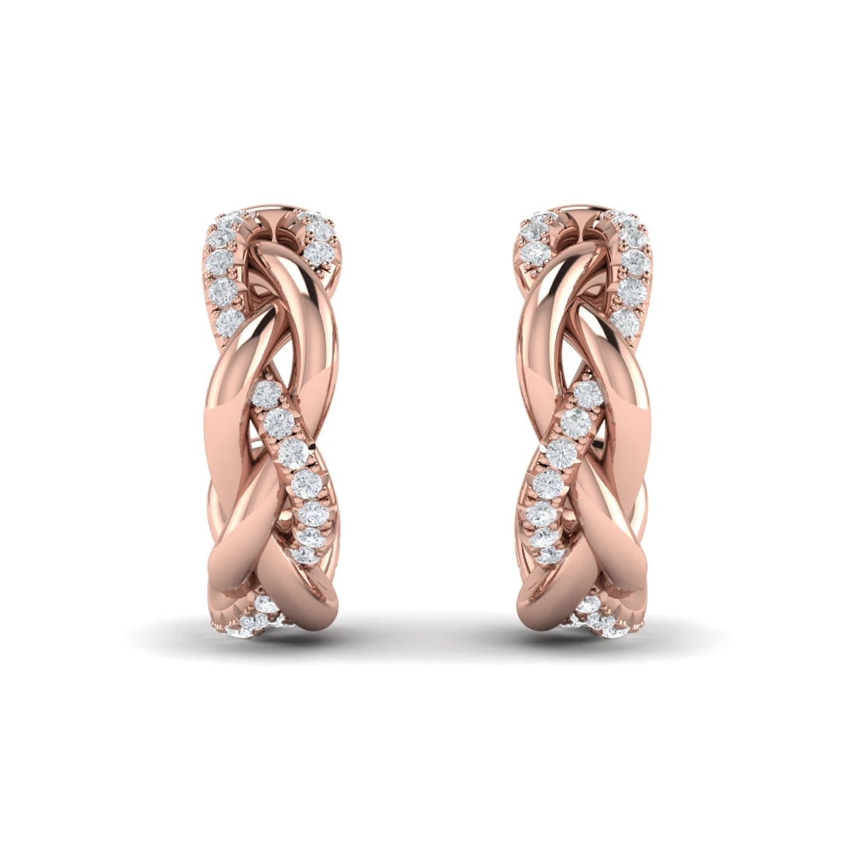 Alternating Diamond Twist Huggie Hoop Earrings Rose Gold