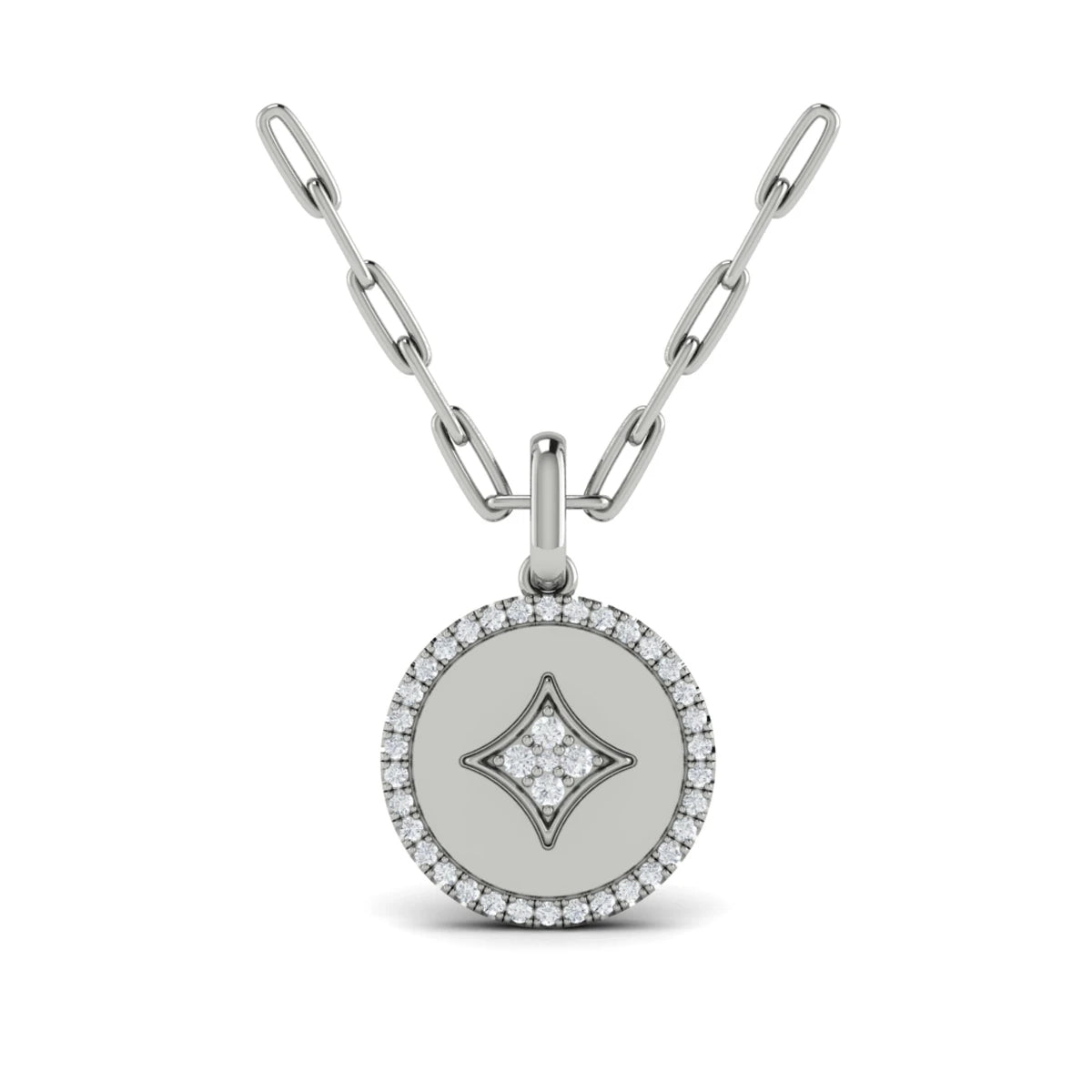 You're reviewing: Center Star Diamonds and Bezel Pendant Necklace White Gold