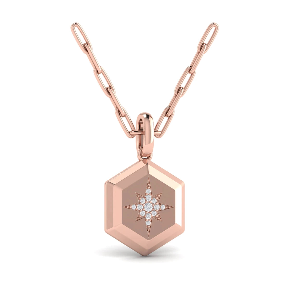 You're reviewing: Center Starburst Diamond and Bezel Hexagon Pendant Necklace Rose Gold
