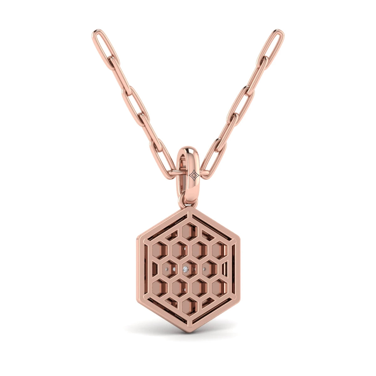Center Starburst Diamond and Bezel Hexagon Pendant Necklace Rose Gold