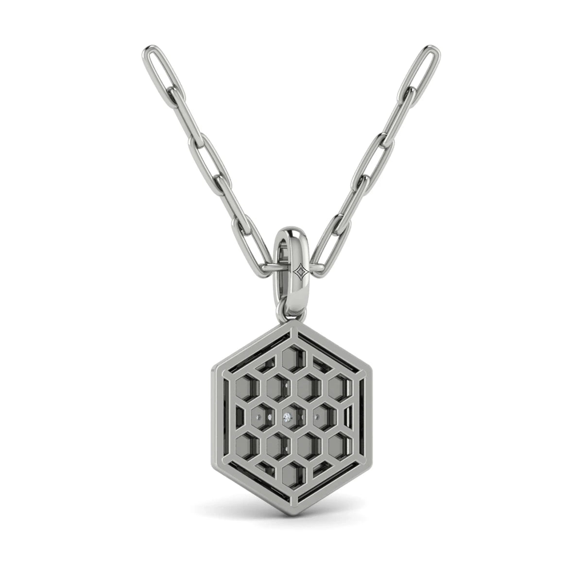 You're reviewing: Center Starburst Diamond and Bezel Hexagon Pendant Necklace White Gold
