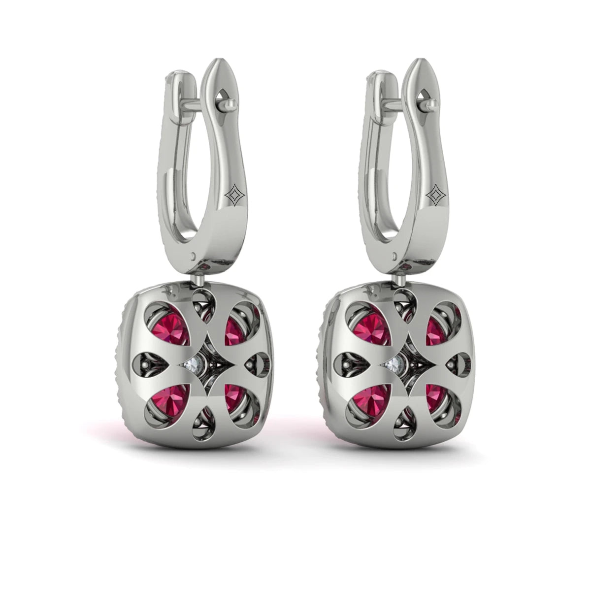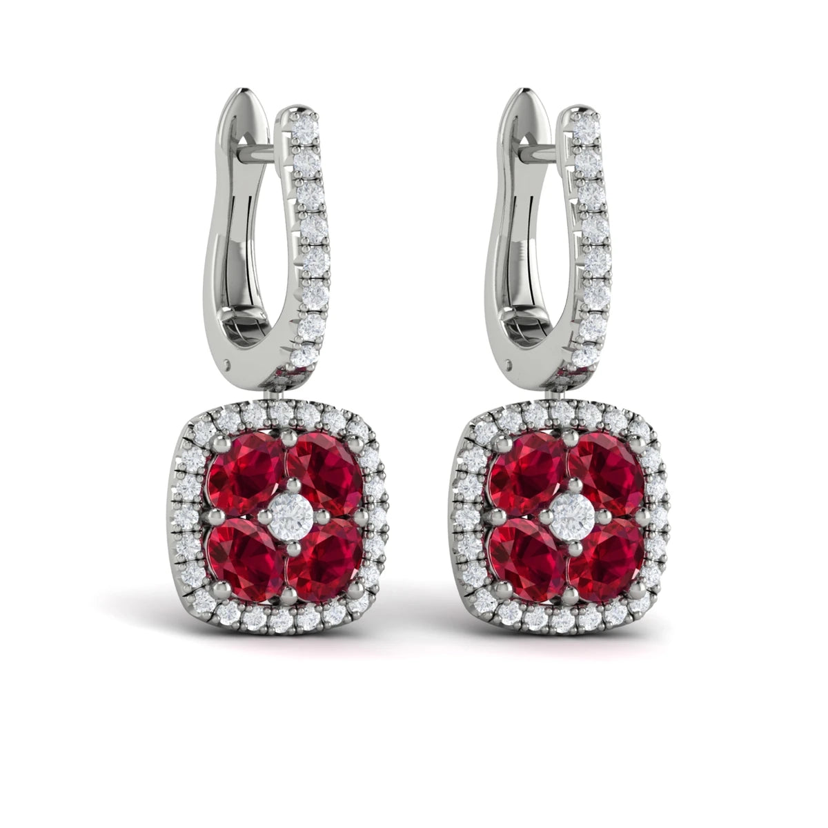Cushion Diamond and Multi Ruby Earrings White Gold