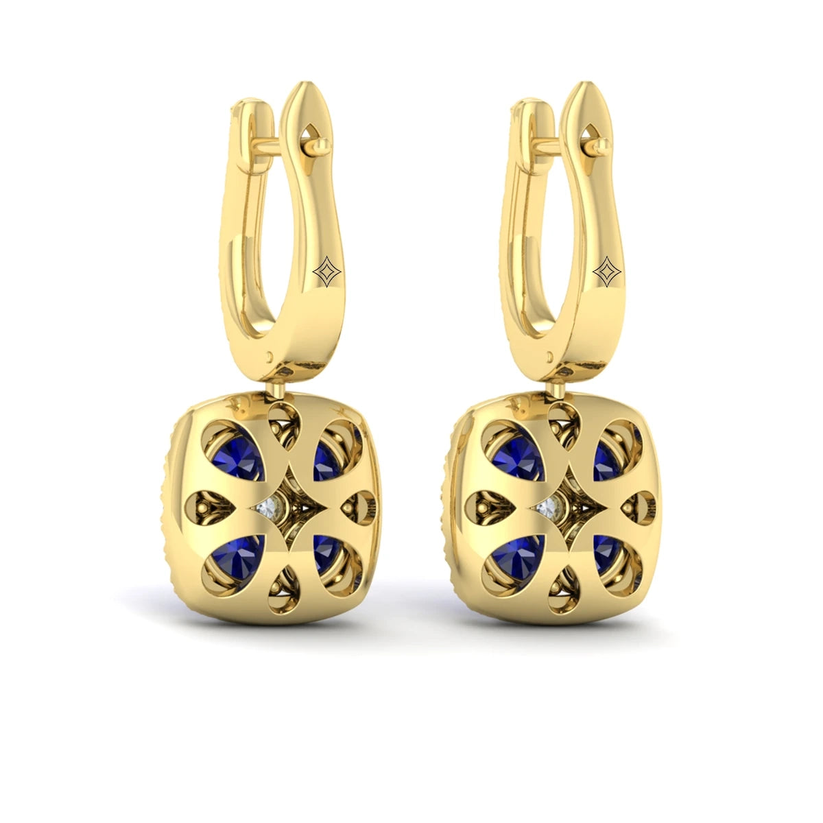 Cushion Diamond and Multi Sapphire Earrings Yellow Gold