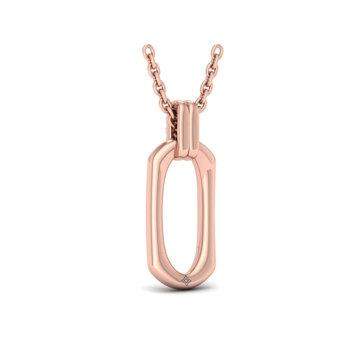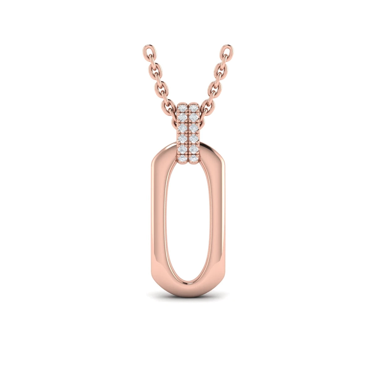 Diamond Accent North South Open Oval Pendant with Link Necklace Rose Gold