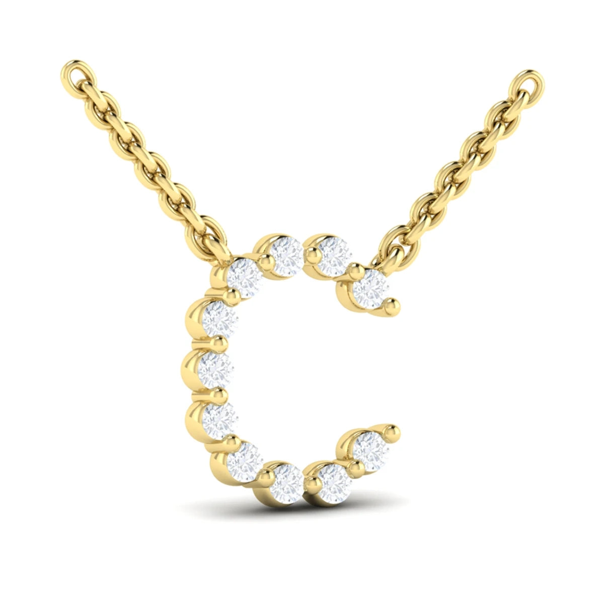 Diamond Alphabet Pendant Necklace, C Yellow Gold