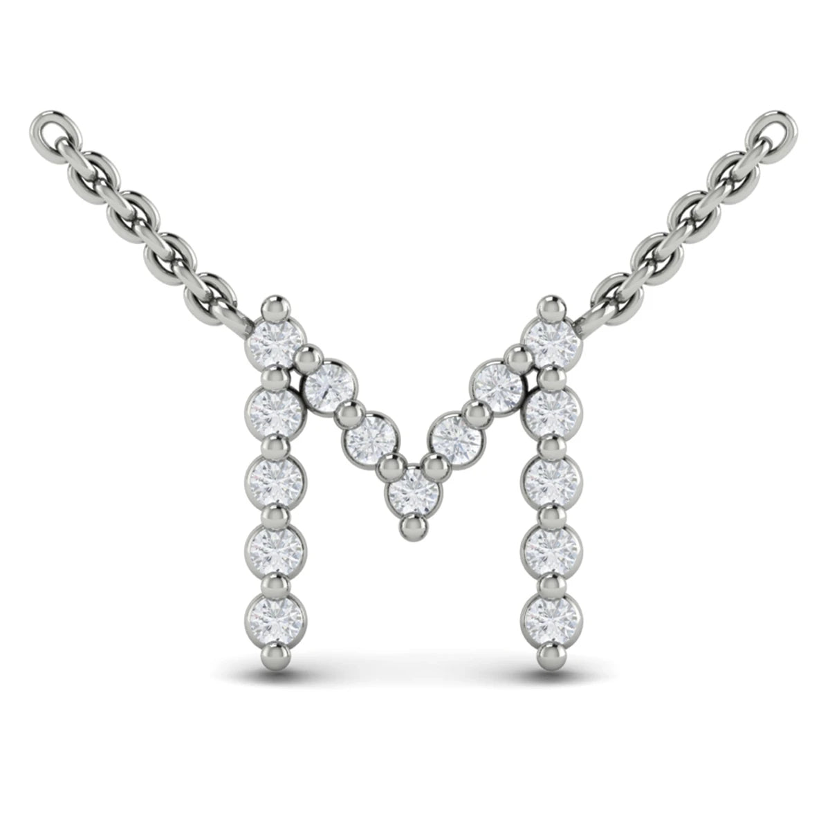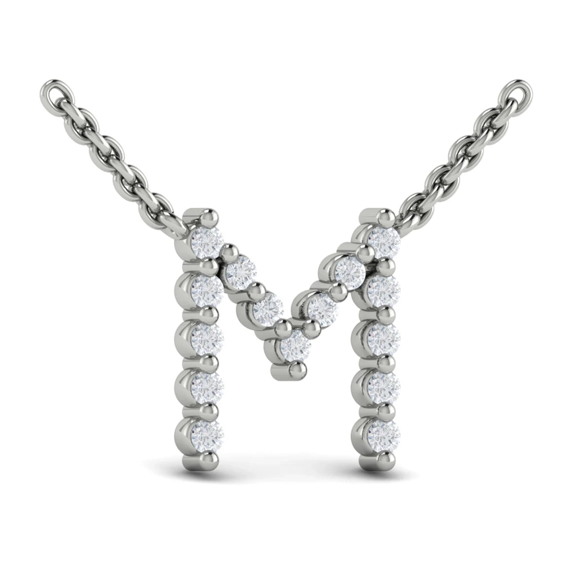 Diamond Alphabet Pendant Necklace, M White Gold