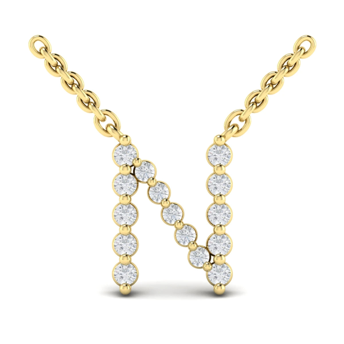 Diamond Alphabet Pendant Necklace, N Yellow Gold