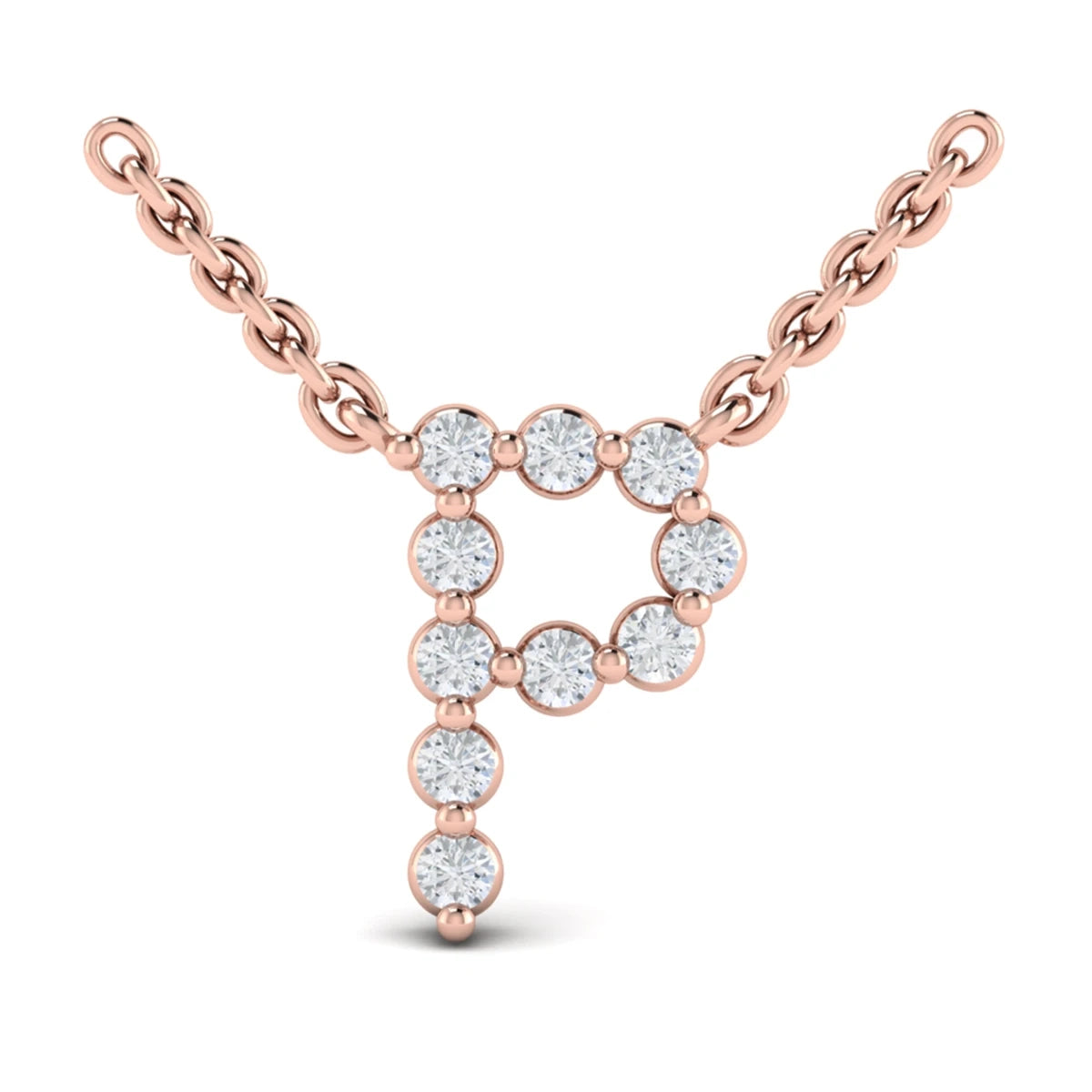 Diamond Alphabet Pendant Necklace, P Rose Gold