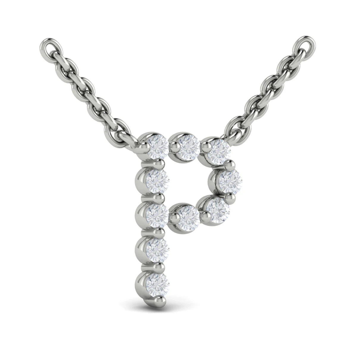 Diamond Alphabet Pendant Necklace, P White Gold