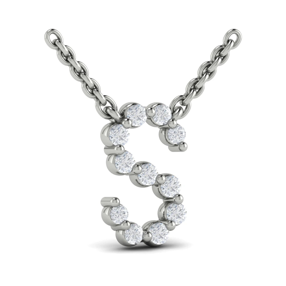 Diamond Alphabet Pendant Necklace, S White Gold