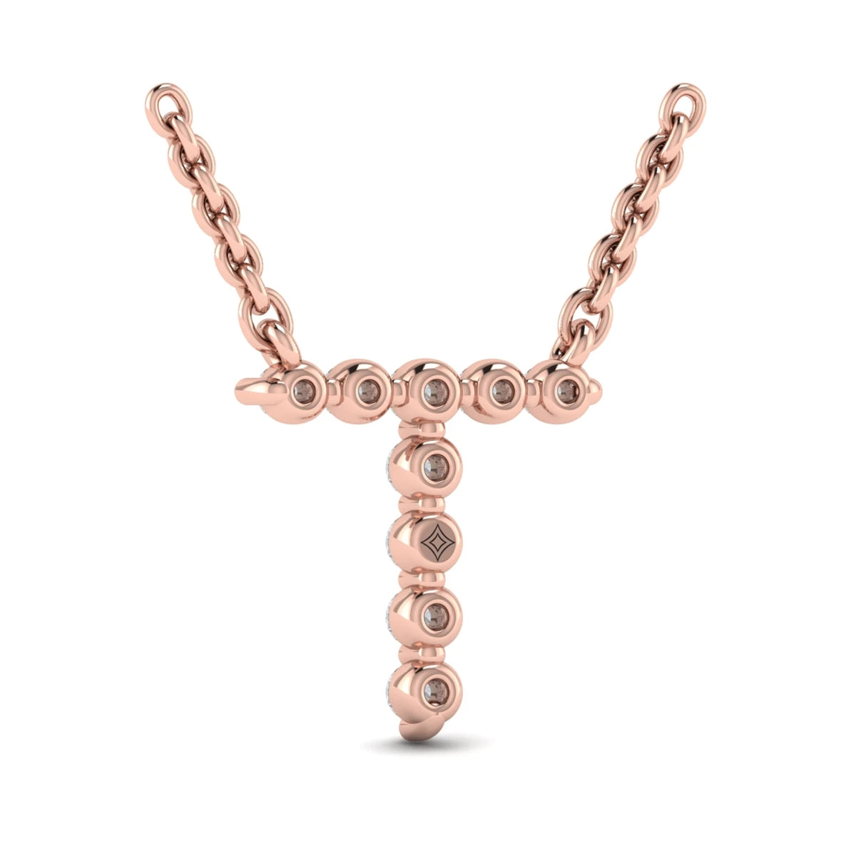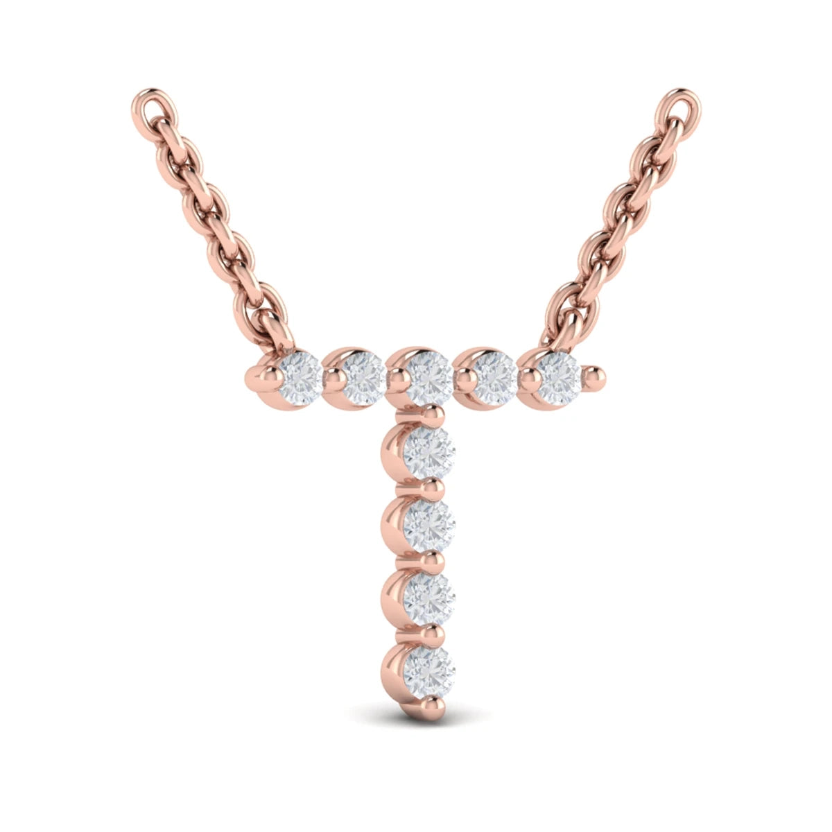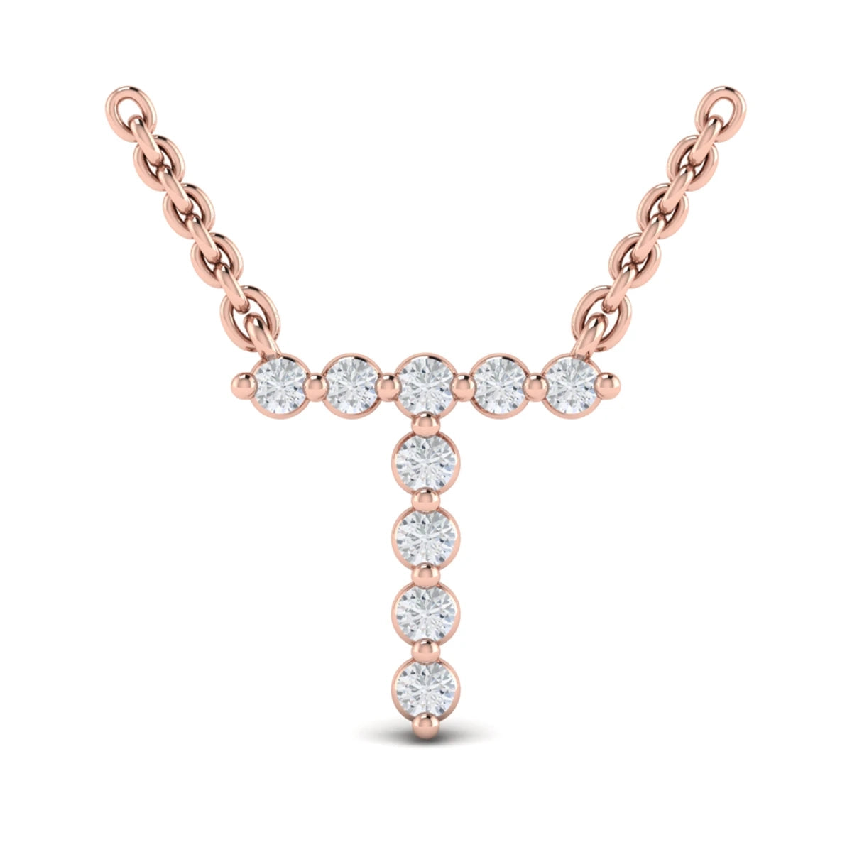 Diamond Alphabet Pendant Necklace, T Rose Gold