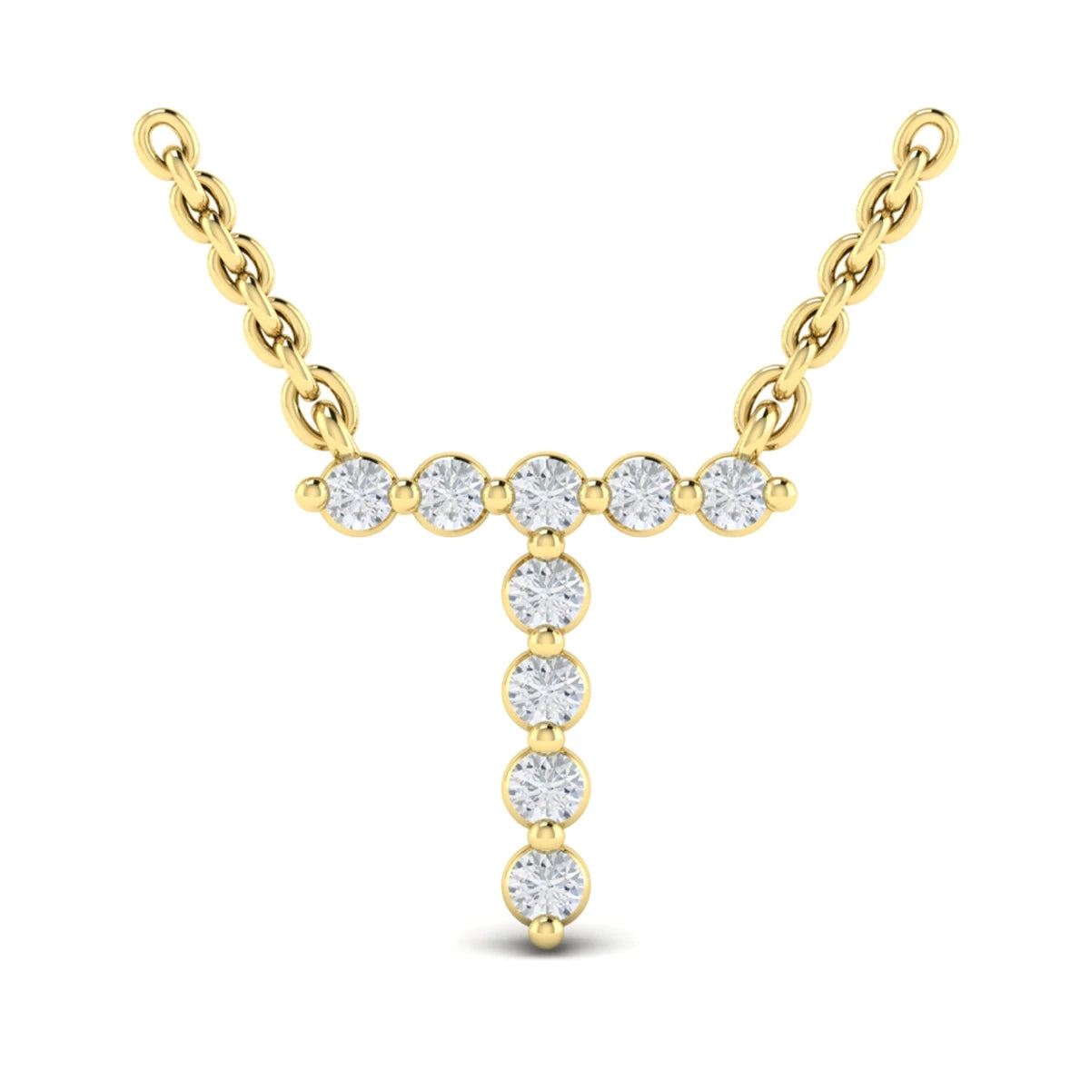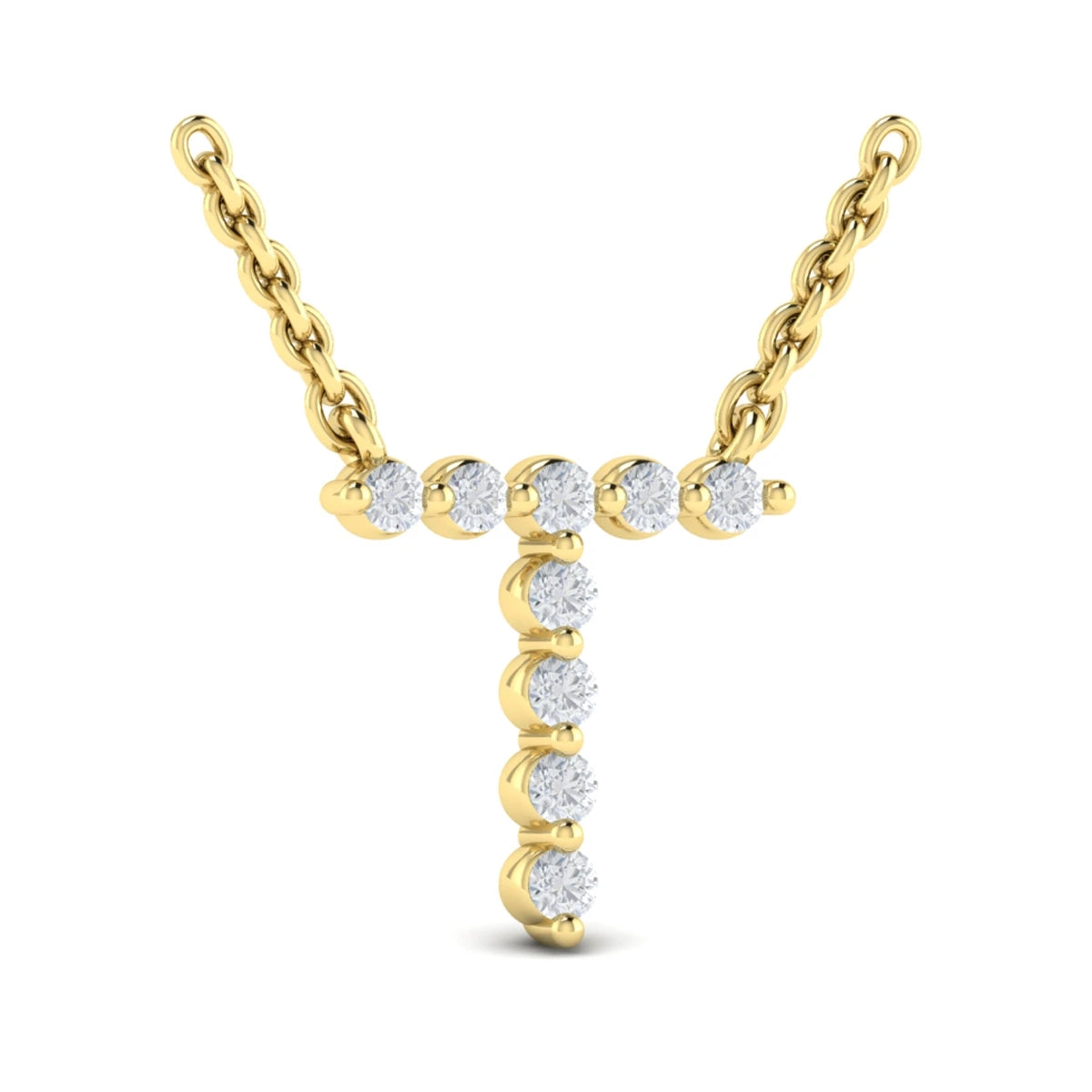 Diamond Alphabet Pendant Necklace, T Yellow Gold