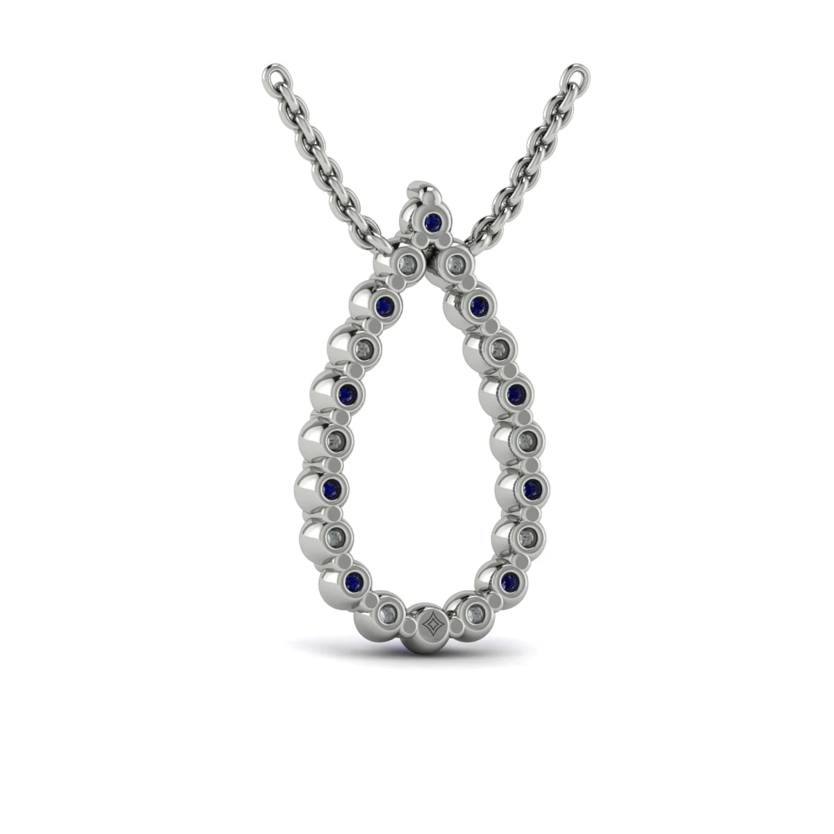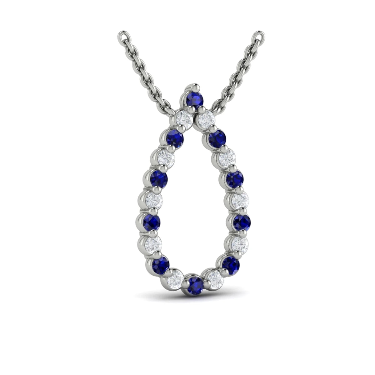 You're reviewing: Diamond and Blue Sapphire Open Teardrop Pendant Necklace White Gold