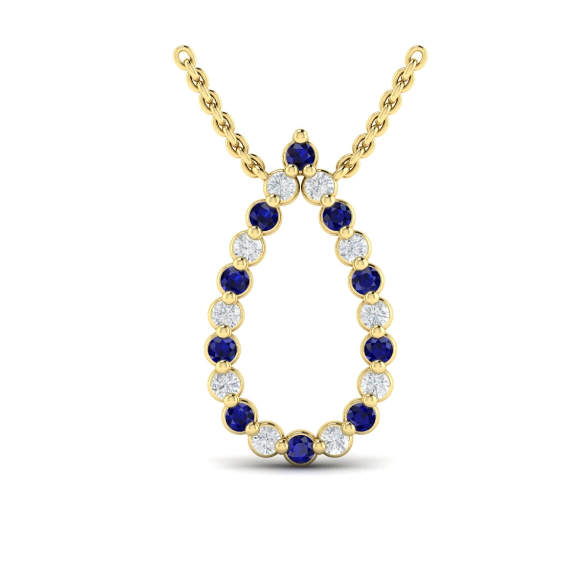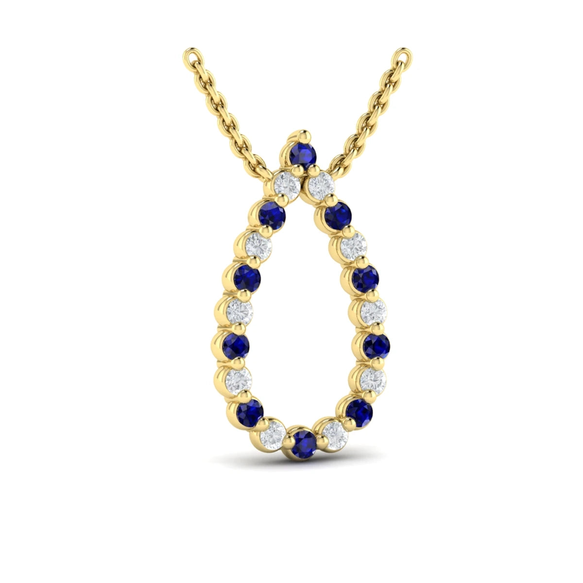 You're reviewing: Diamond and Blue Sapphire Open Teardrop Pendant Necklace Yellow Gold