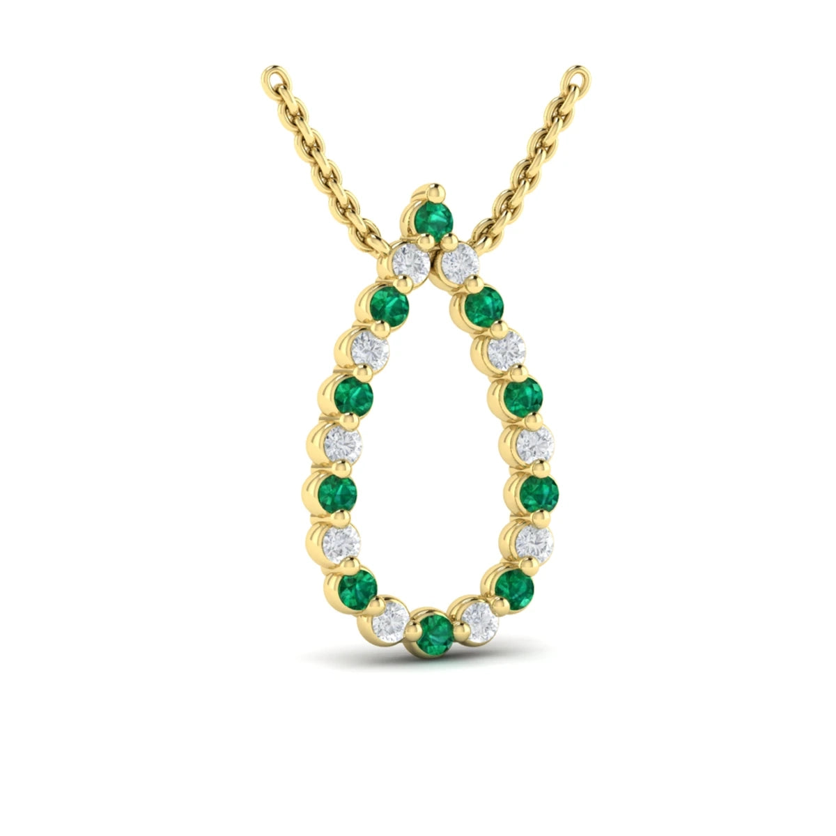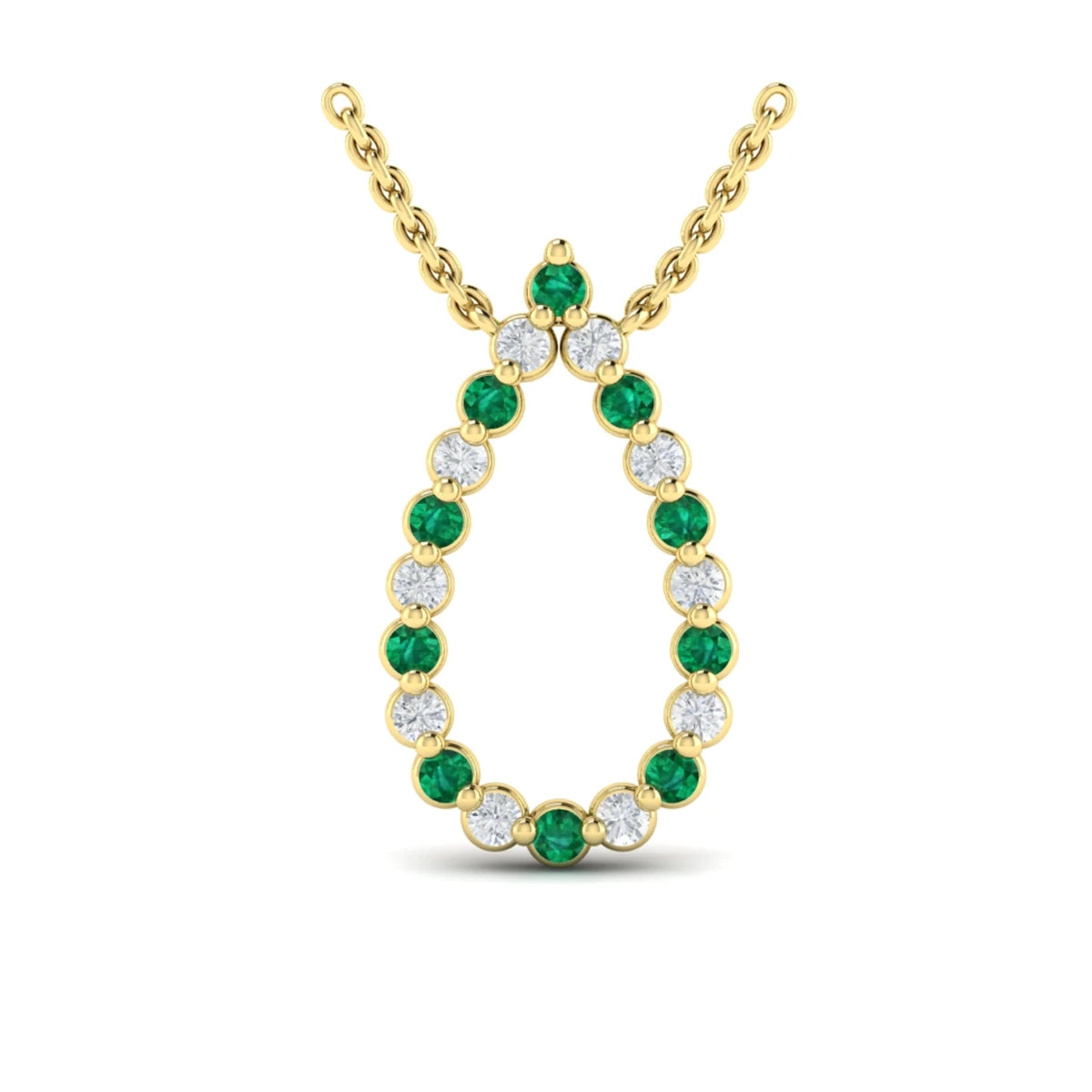 You're reviewing: Diamond and Emerald Open Teardrop Pendant Necklace Yellow Gold