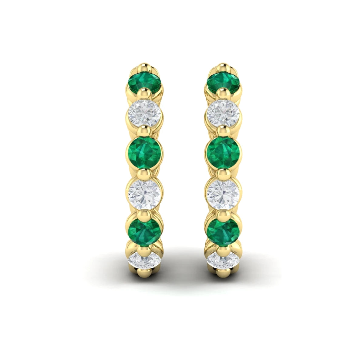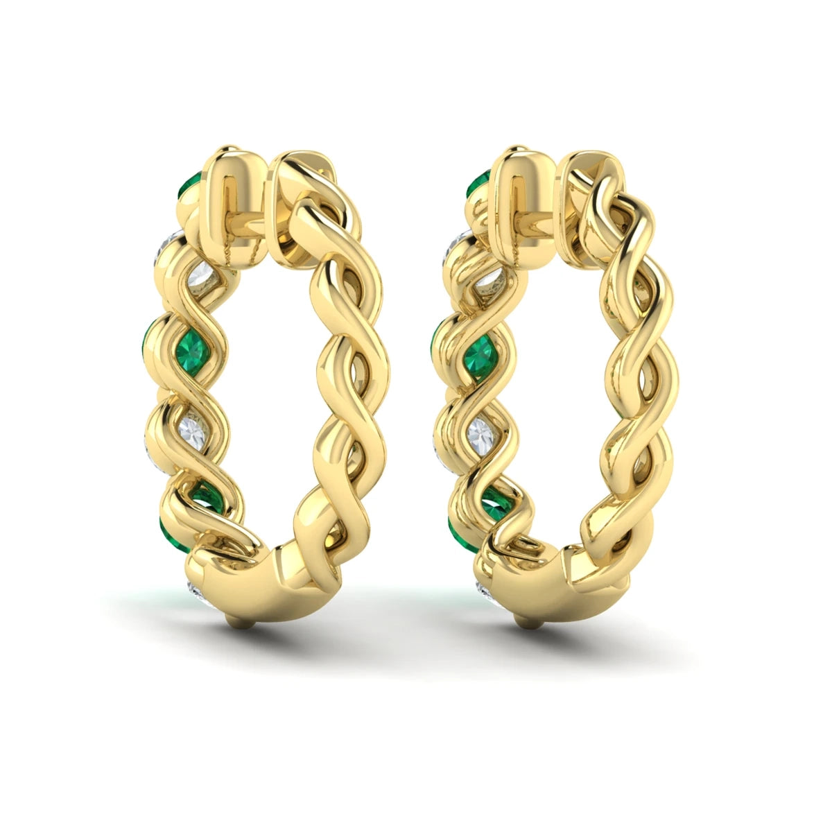 Diamond and Emerald Twist Hoop Earrings Yellow Gold
