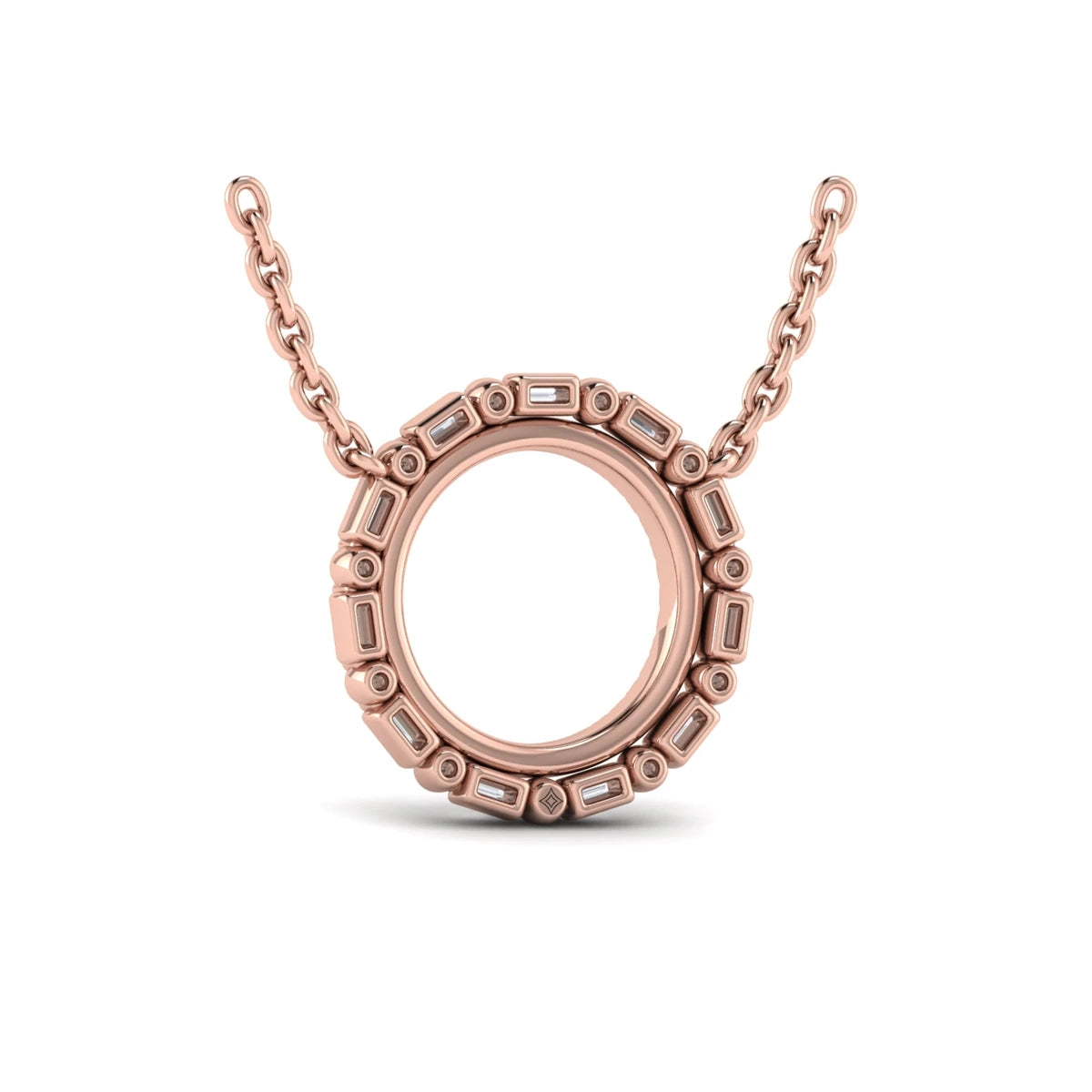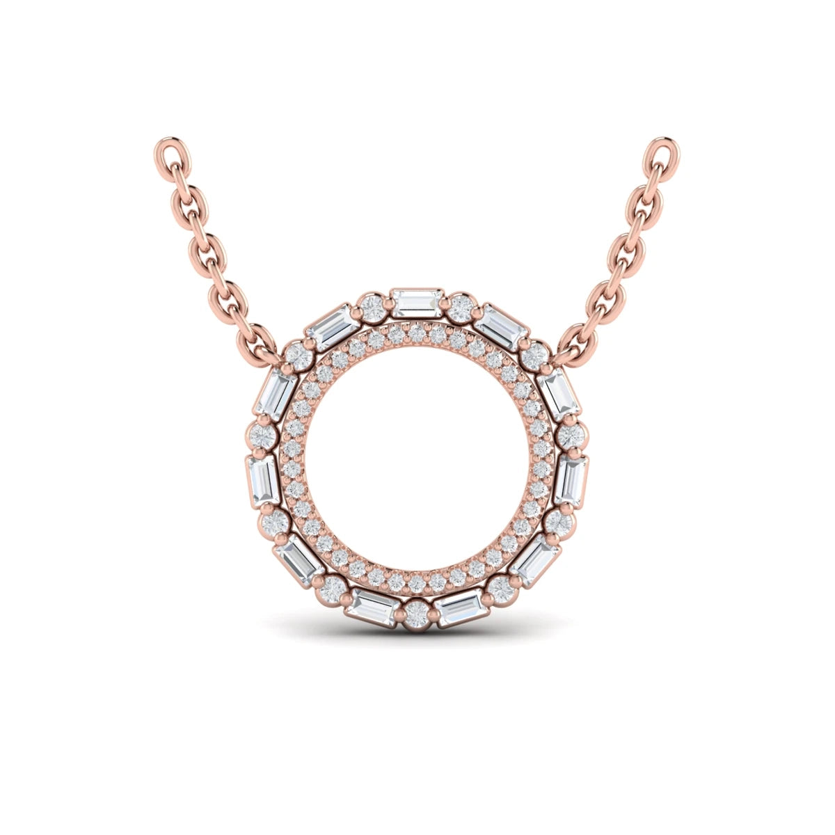 Diamond Baguette Double Open Circle Pendant Necklace Rose Gold