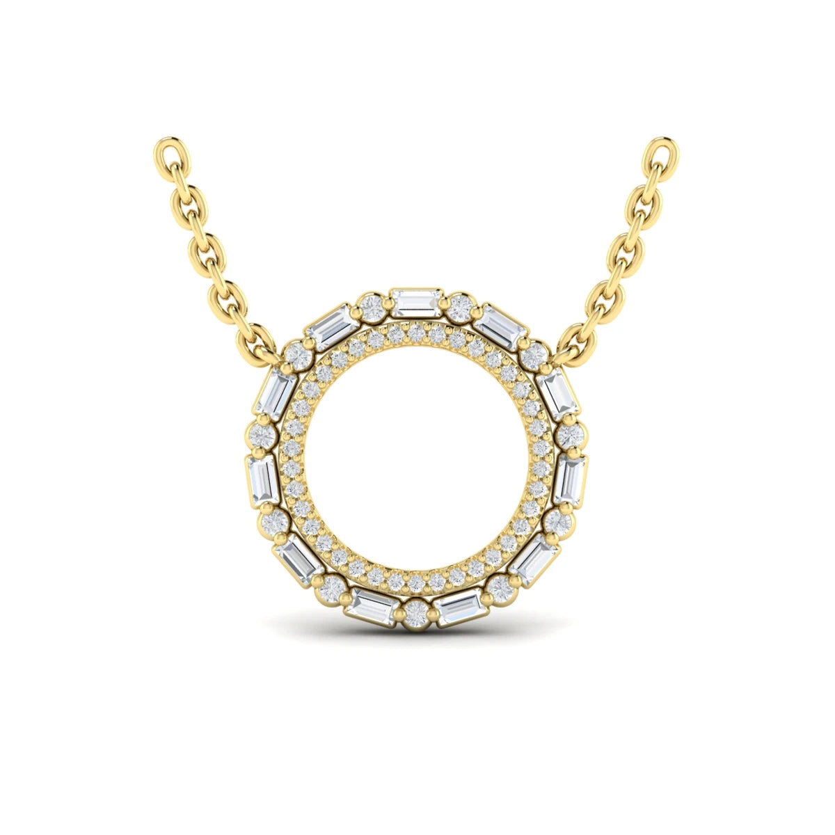 You're reviewing: Diamond Baguette Double Open Circle Pendant Necklace Yellow Gold