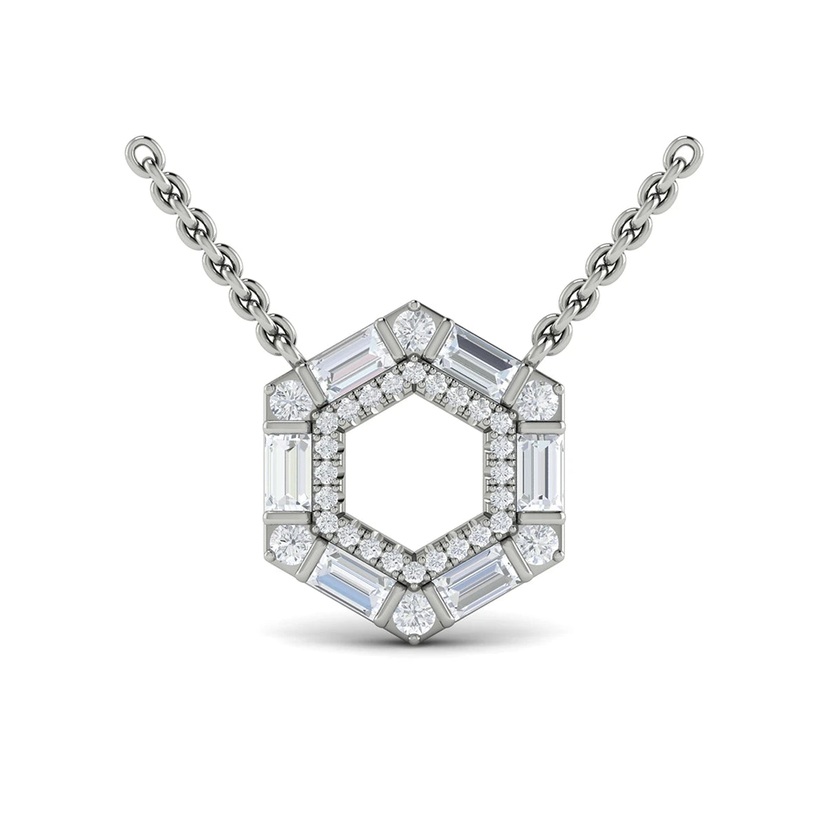 You're reviewing: Diamond Baguette Double Row Open Honeycomb Pendant Necklace Platinum