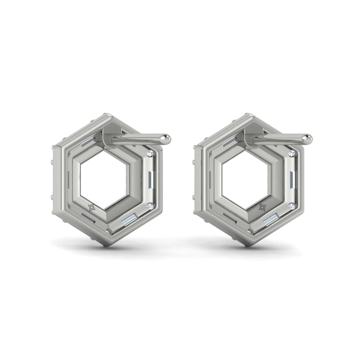You're reviewing: Diamond Baguette Double Row Open Honeycomb Stud Earrings Platinum
