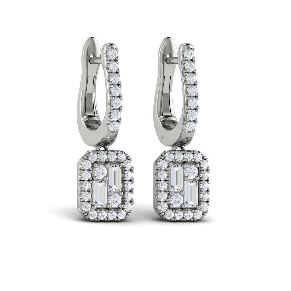 Diamond Baguette Halo Drop Huggie Earrings Platinum