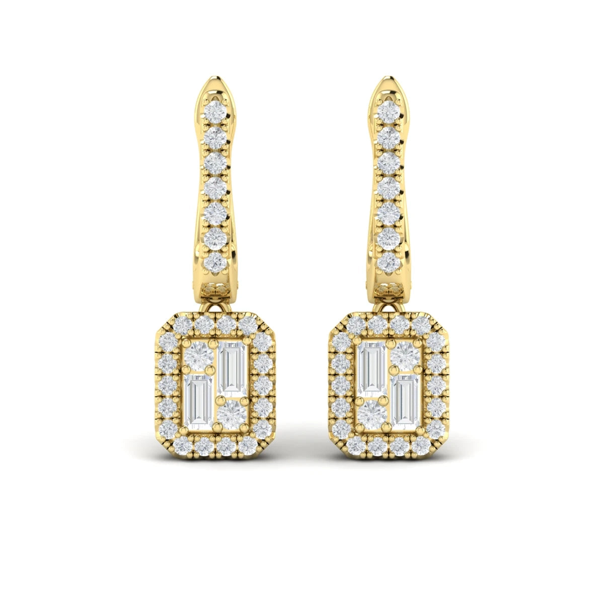 Diamond Baguette Halo Drop Huggie Earrings Yellow Gold