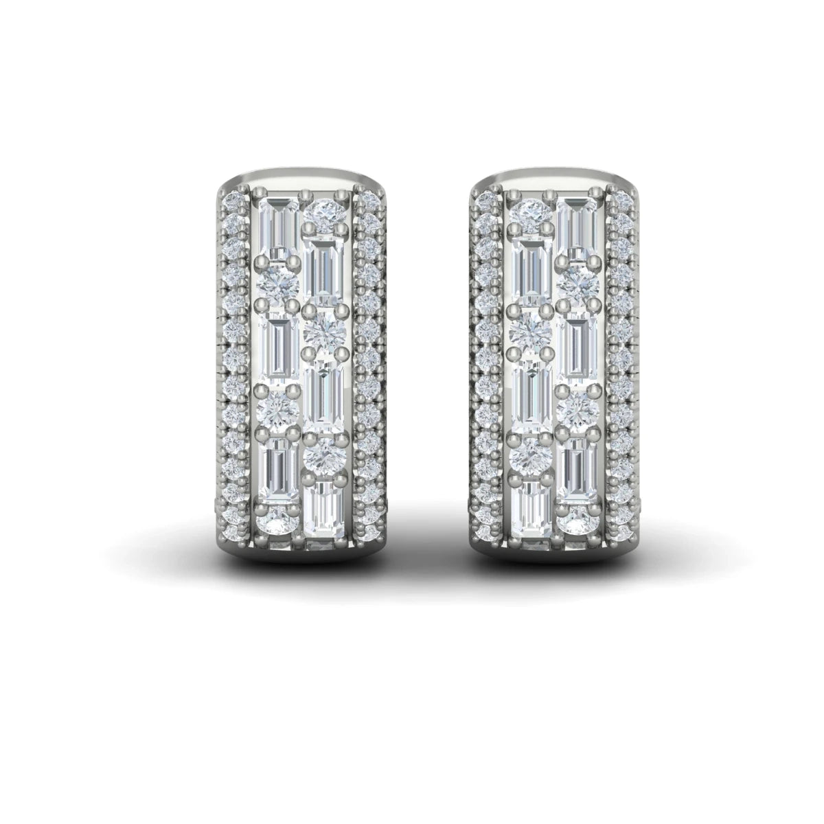Diamond Baguette Multi Row Huggie Earrings White Gold