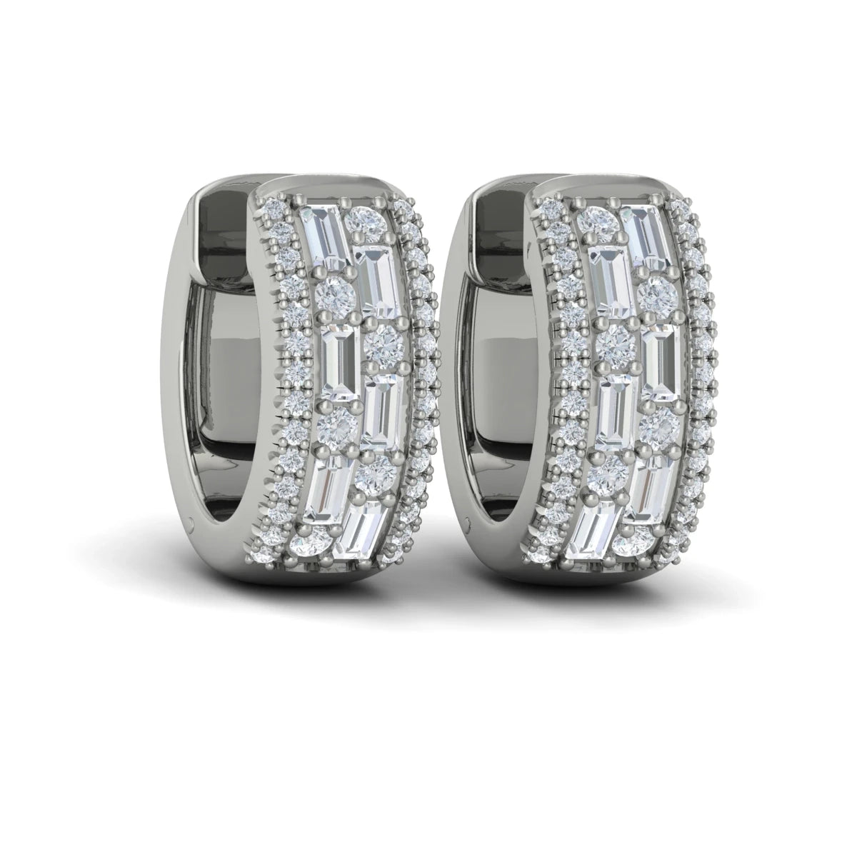 You're reviewing: Diamond Baguette Multi Row Huggie Earrings White Gold