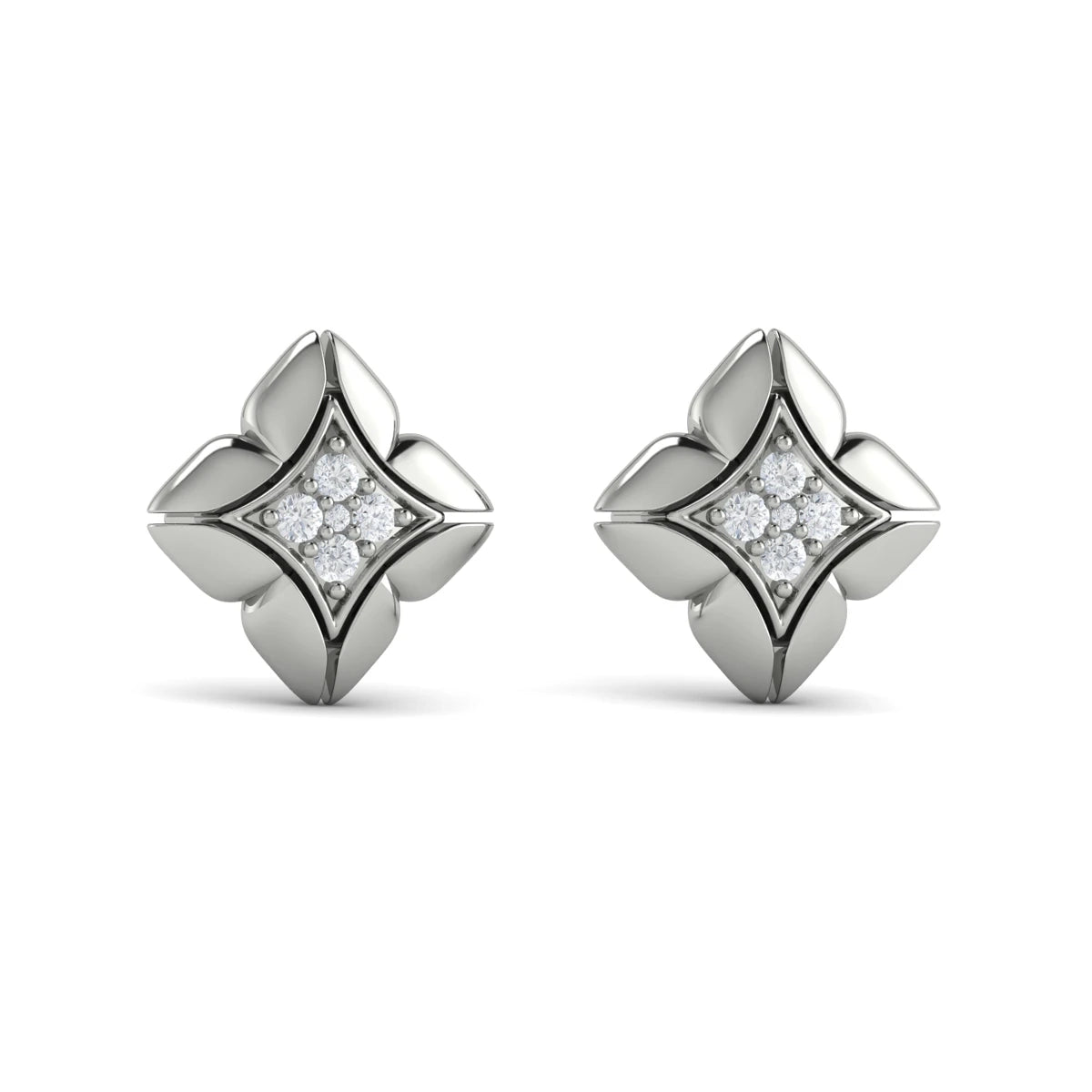 Diamond Cluster Floral Vlora Star Motif Stud Earrings White Gold