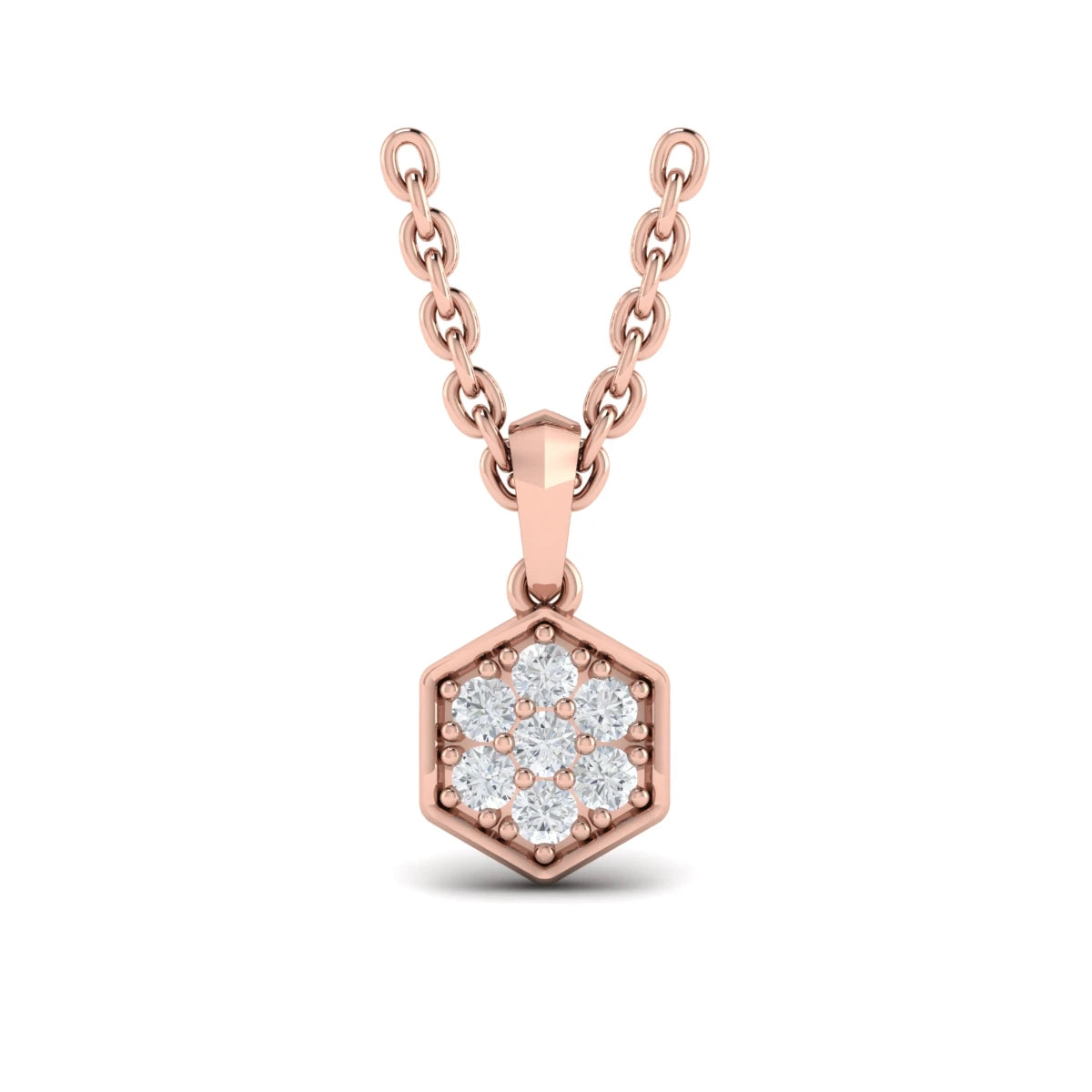 Diamond Cluster Honeycomb Pendant Necklace Rose Gold