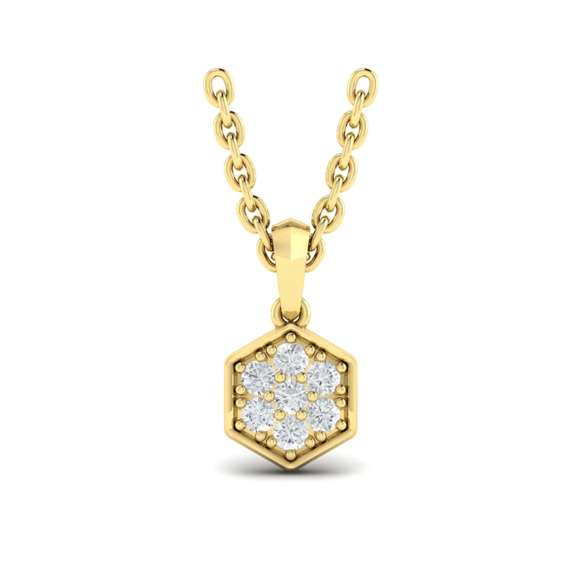 Diamond Cluster Honeycomb Pendant Necklace Yellow Gold