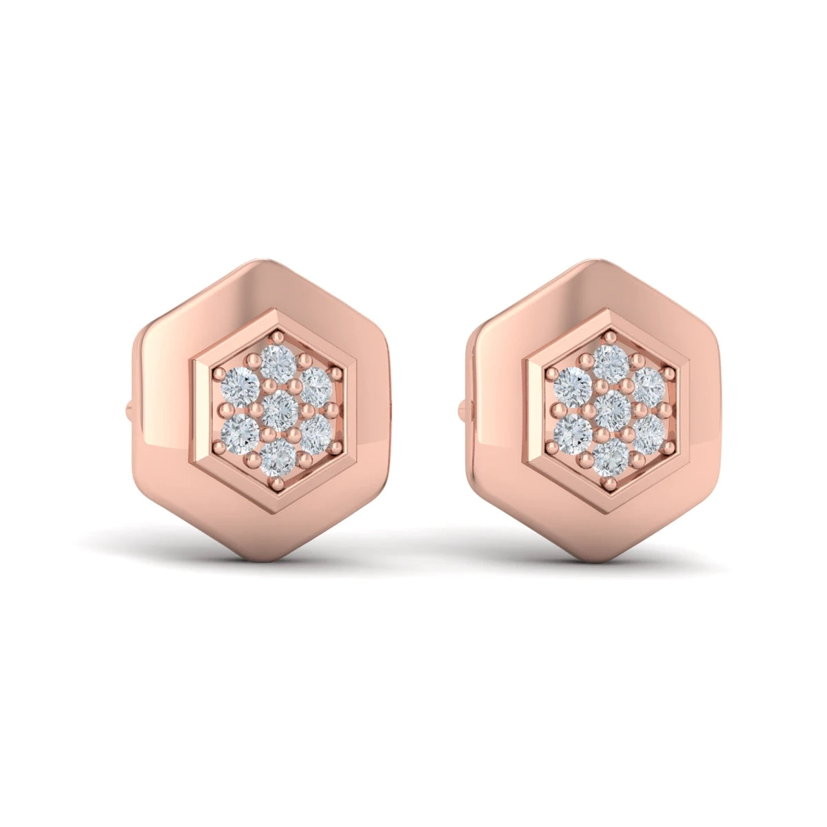 Diamond Cluster Honeycomb Stud Earrings Rose Gold
