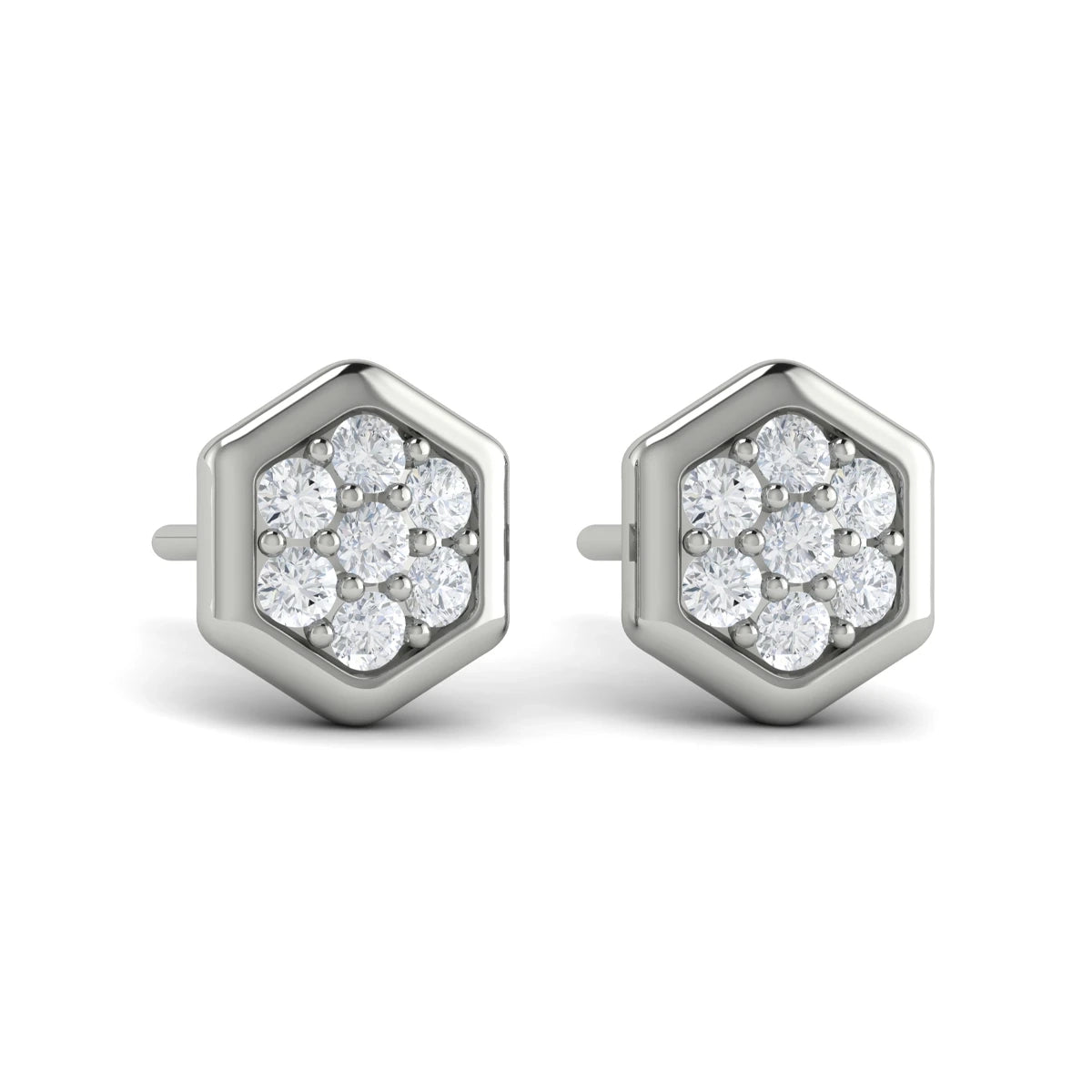 Diamond Cluster Honeycomb Stud Earrings White Gold