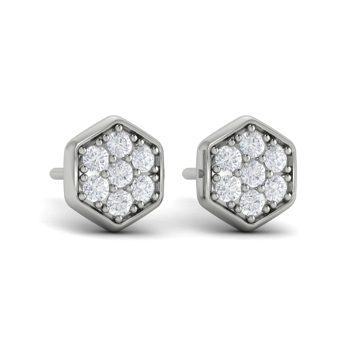 Diamond Cluster Honeycomb Stud Earrings White Gold